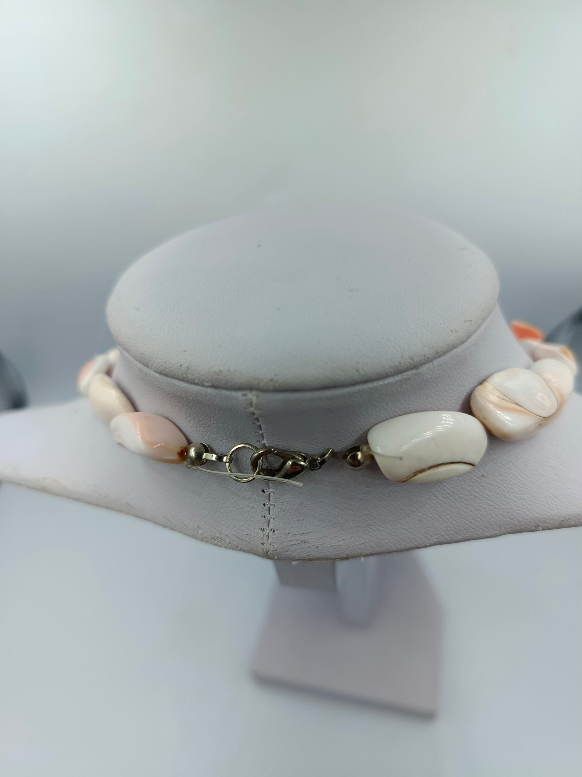Vintage Muschelkette in Creme Apricot Naturdesign Handarbeit