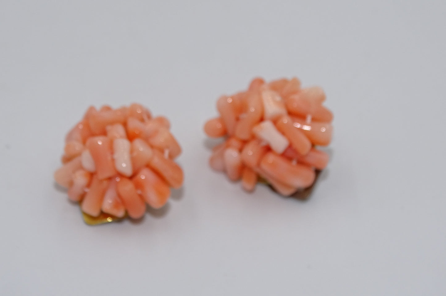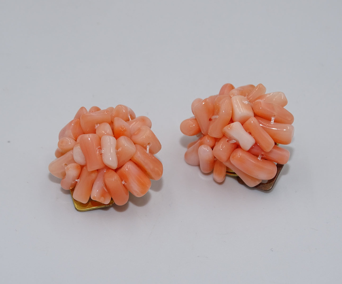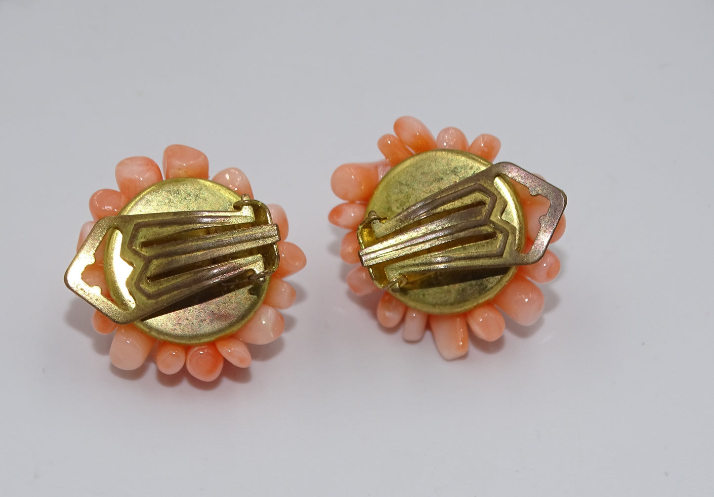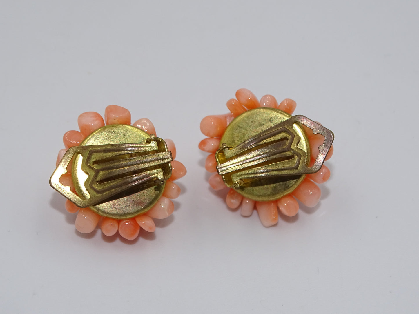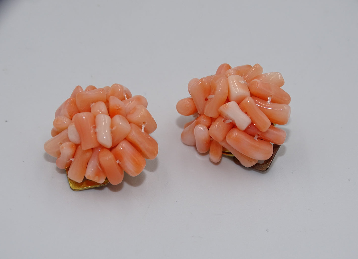 Entdecken Sie diese charmanten Vintage Ohrclips in einer ansprechenden Korallenoptik. Sie vereinen nostalgischen Charme mit zeitlosem Stil und sind ein perfektes Accessoire für jede Gelegenheit.