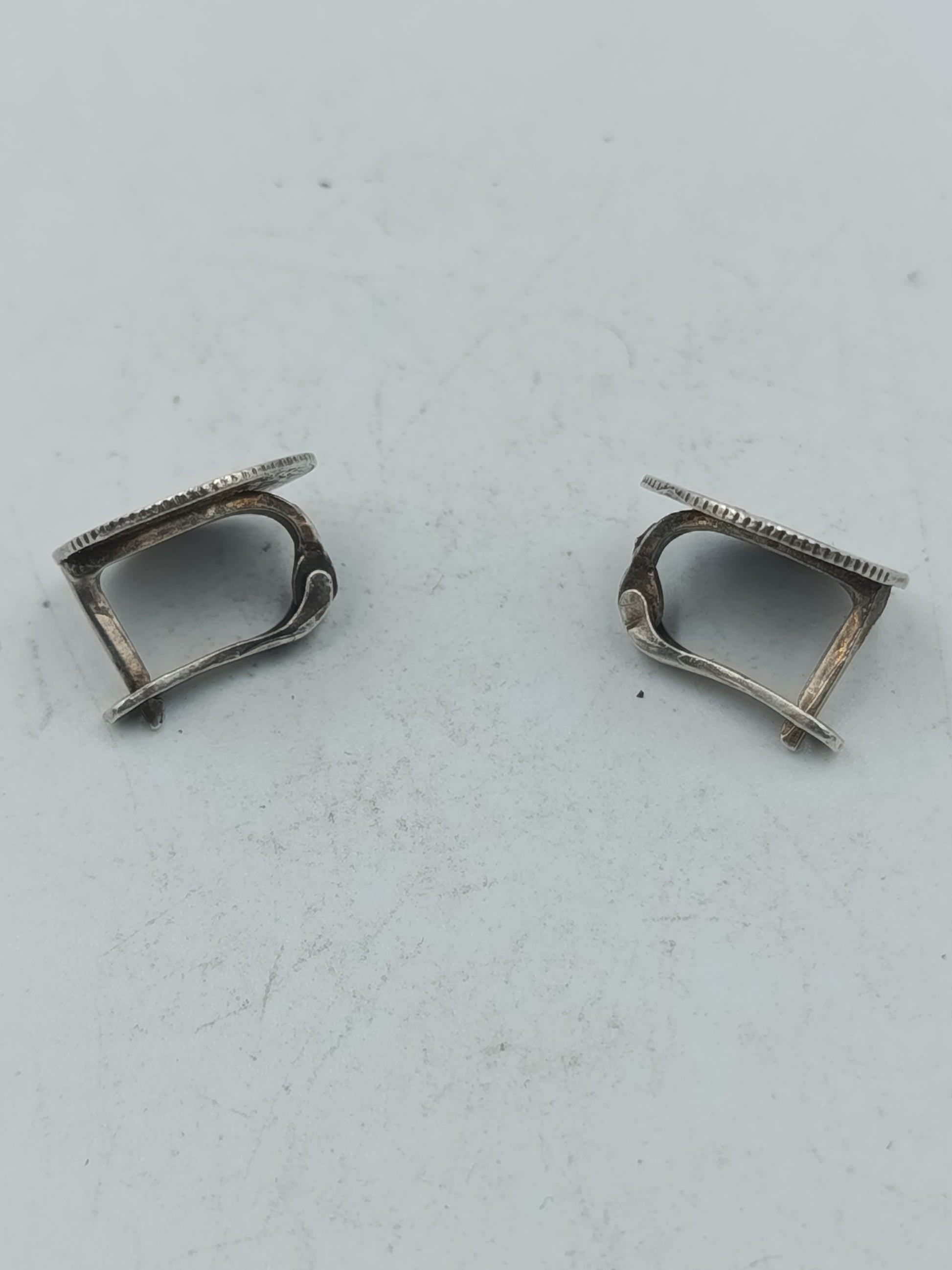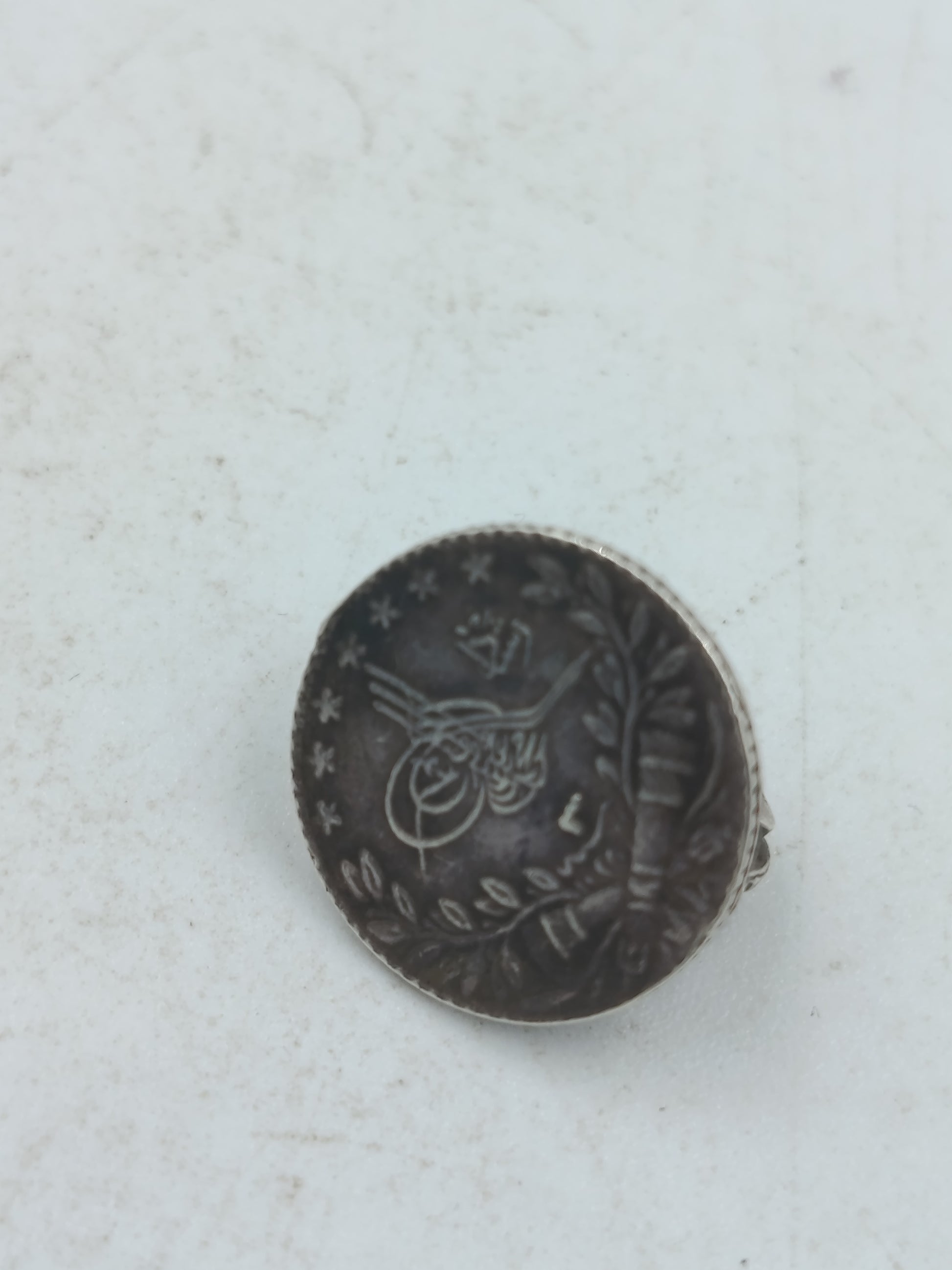 Dieses einzigartige Paar Ohrclips wurde aus echten, historischen Silbermünzen des Osmanischen Reiches gefertigt, die vermutlich aus der Zeit von Sultan Muhammad V. (Mehmed V.) stammen (Regierungsantritt 1327 AH, bzw. 1909 n. Chr.). Die Münzen wurden fachmännisch zu Ohrclips umgearbeitet, wobei der Münzrand erhalten blieb. Sie sind aus 925er Sterlingsilber gefertigt. Die Rückseite zeigt den einfachen, aber funktionalen Clip-Mechanismus.