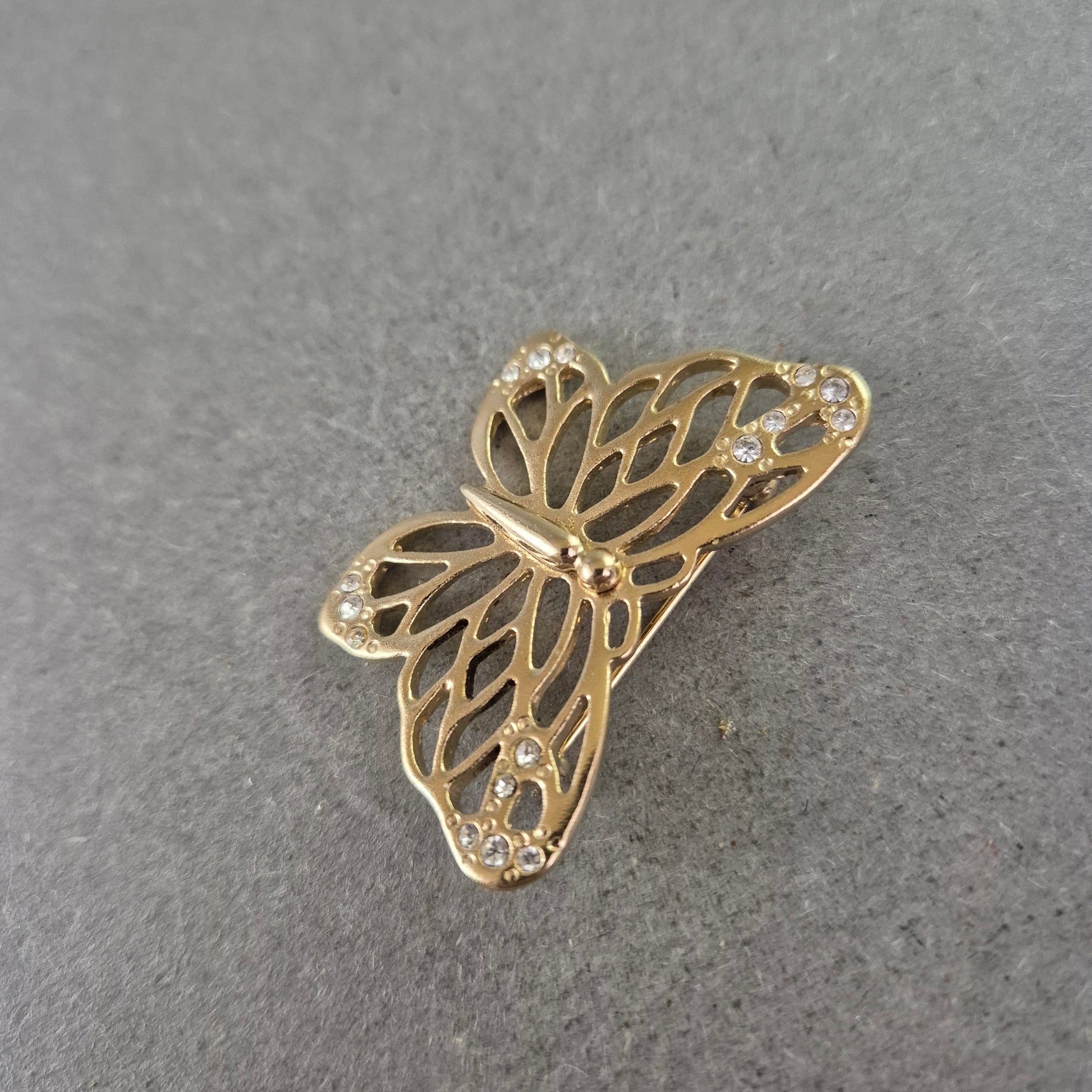Vintage Schmetterlingsbrosche mit Strass – Goldfarbener Glanz