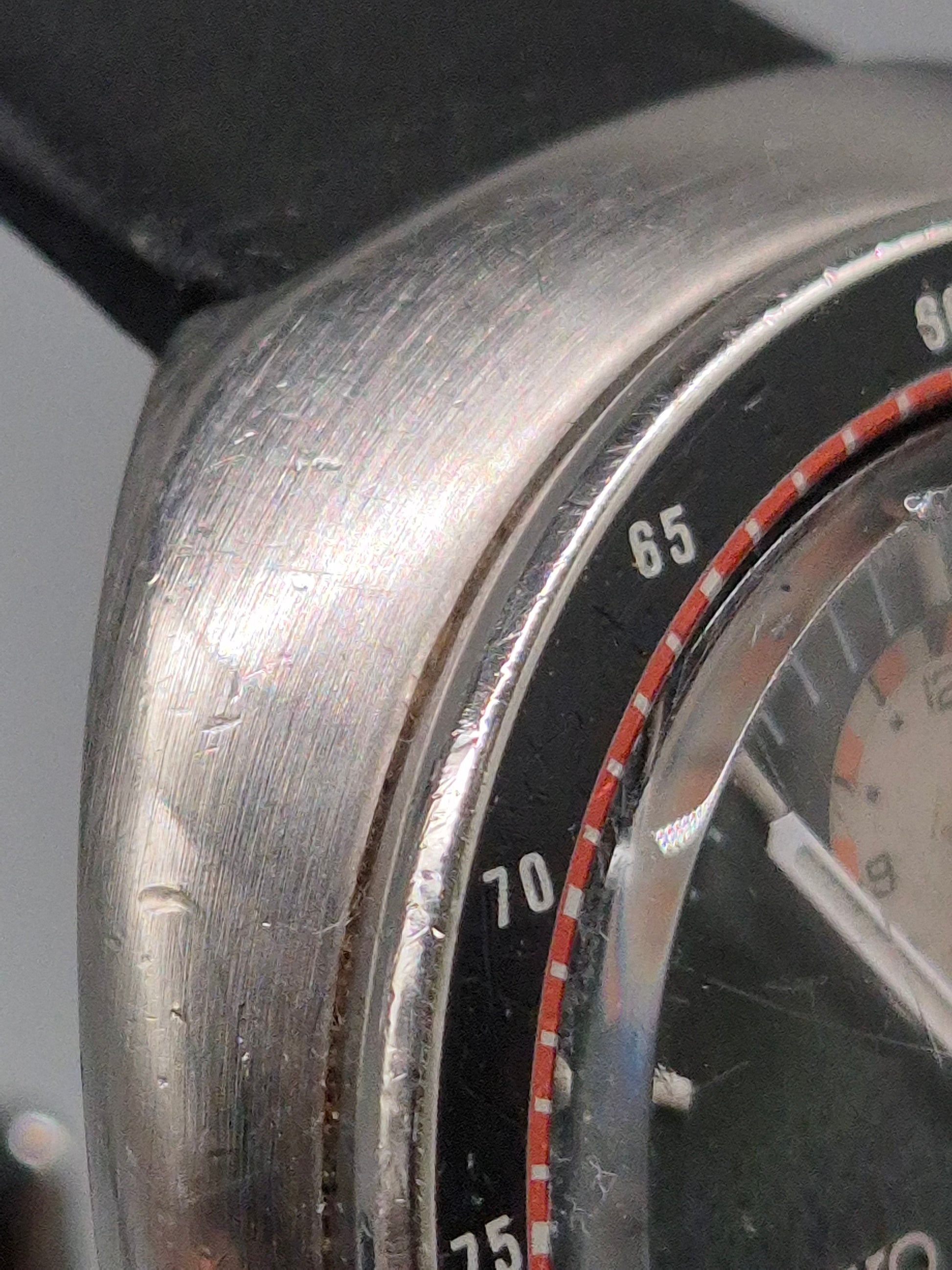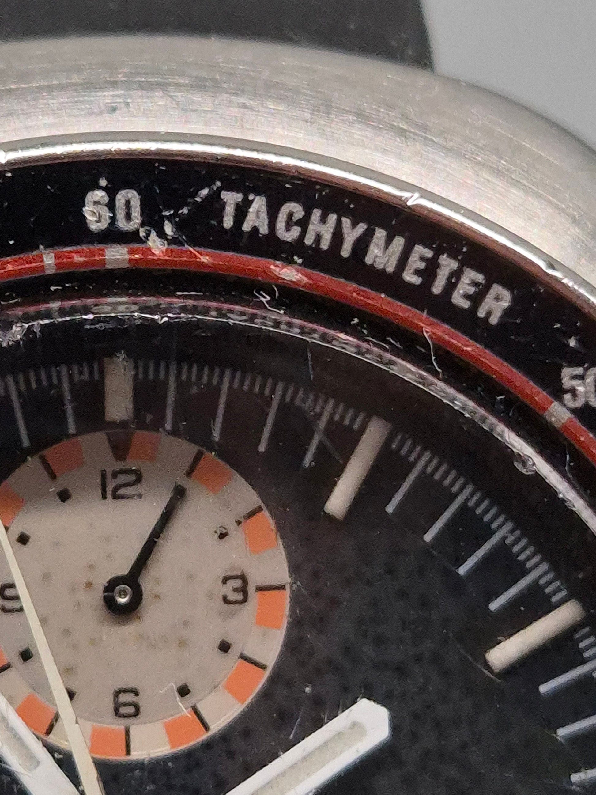 – Sportlich-scharfer 70s-Designcharakter mit Tachymeter-Lünette