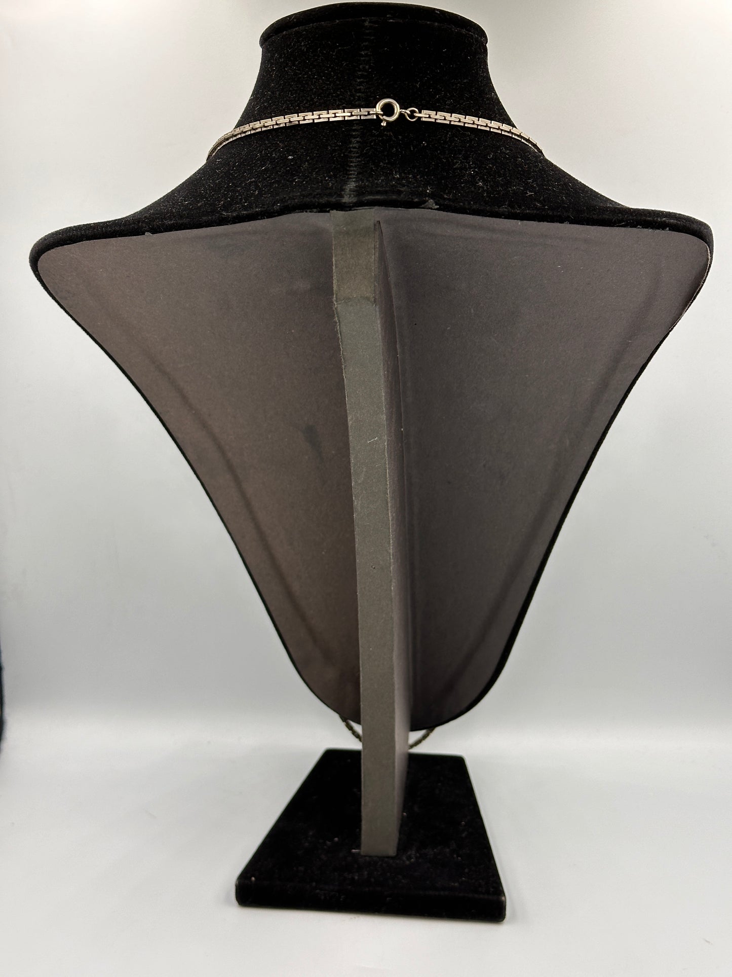 Um die Schönheit und den Glanz Ihrer Vintage Silber Halskette zu bewahren, empfehlen wir eine regelmäßige Reinigung mit einem weichen Silberputztuch. Vermeiden Sie den Kontakt mit Wasser, Parfüm oder anderen Chemikalien, um die Lebensdauer der Kette zu verlängern.