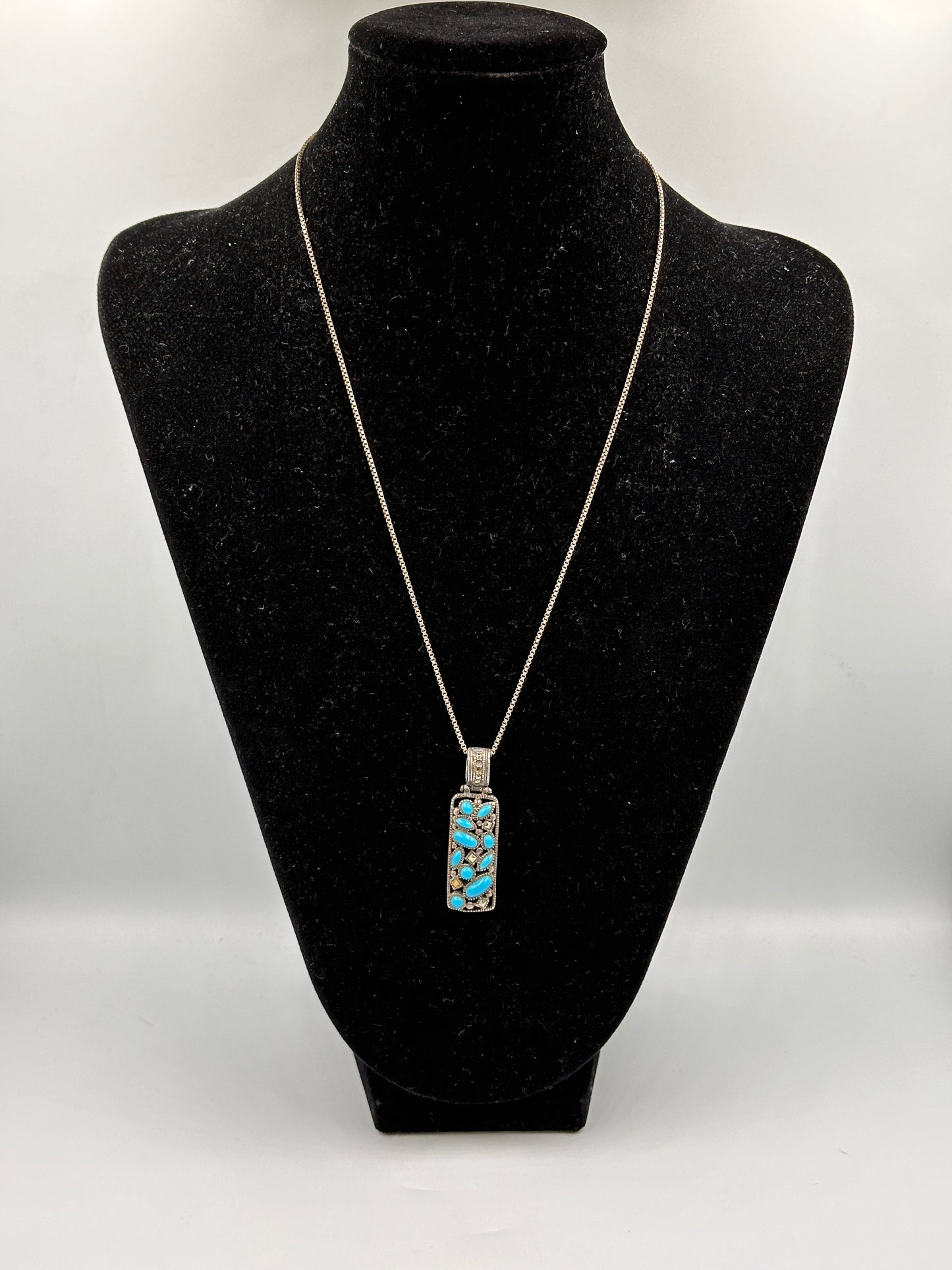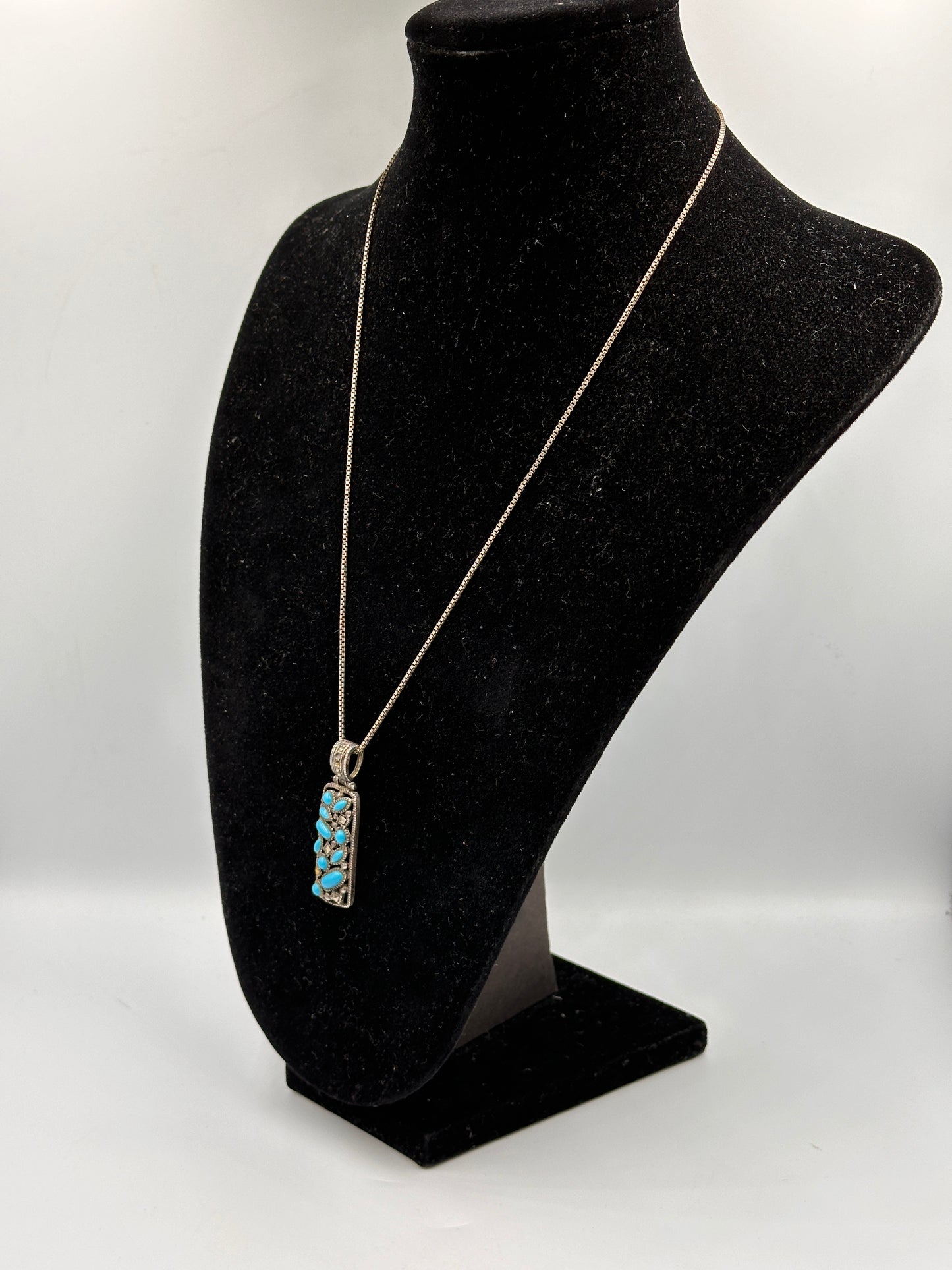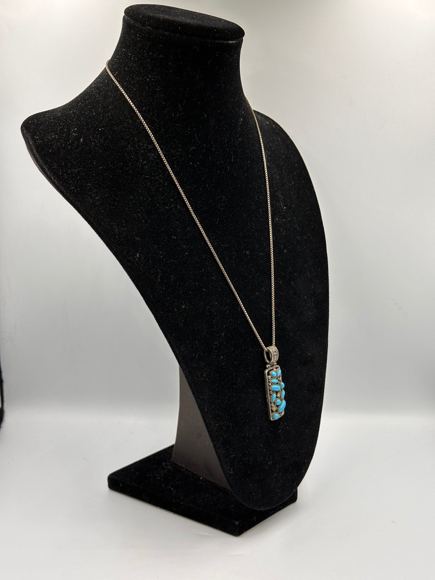 Vintage Silber 835 Halskette mit Art Deco Anhänger und Türkisen Steinen
