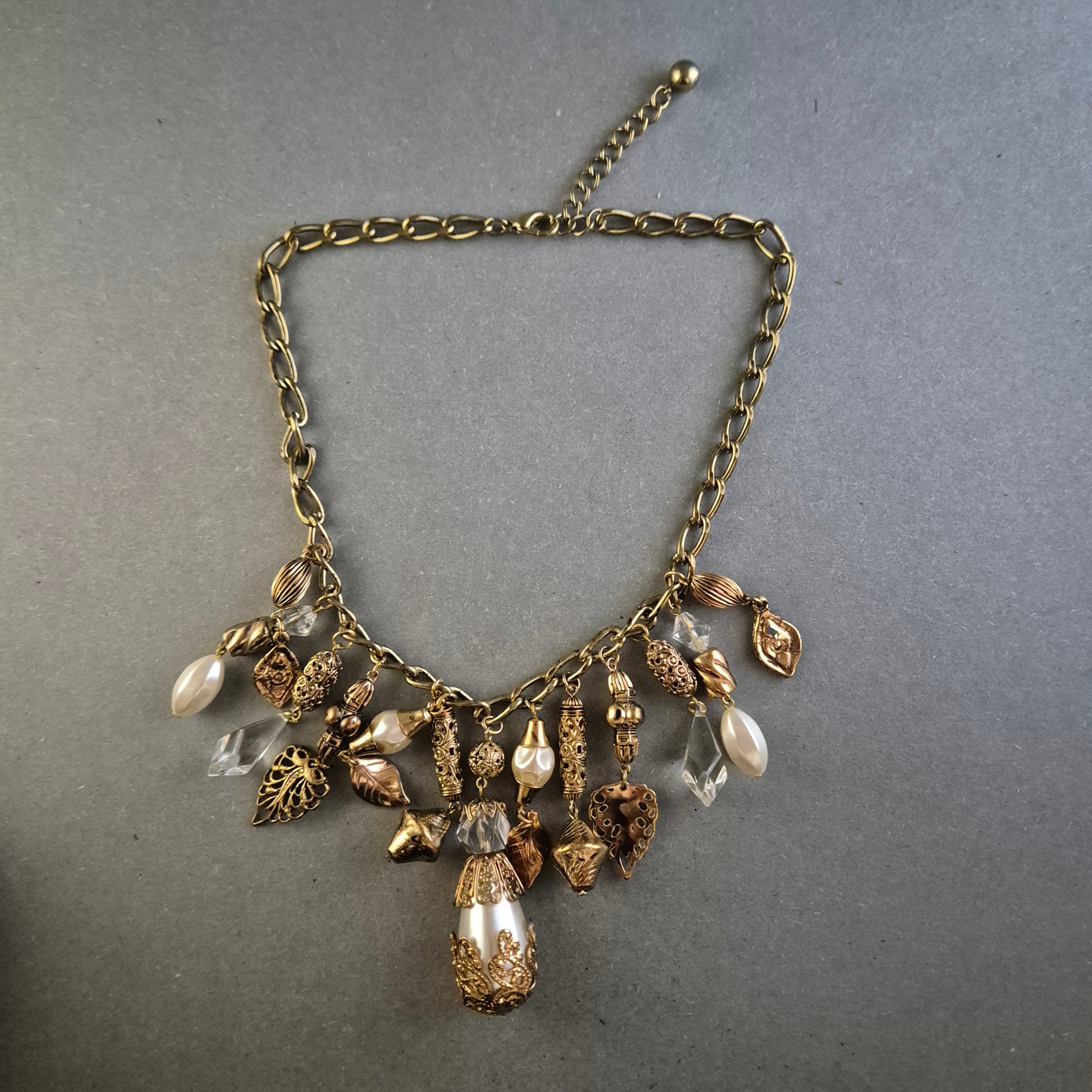 Vintage Statement-Kette mit Charms – Elegante Goldoptik & Perlendetails