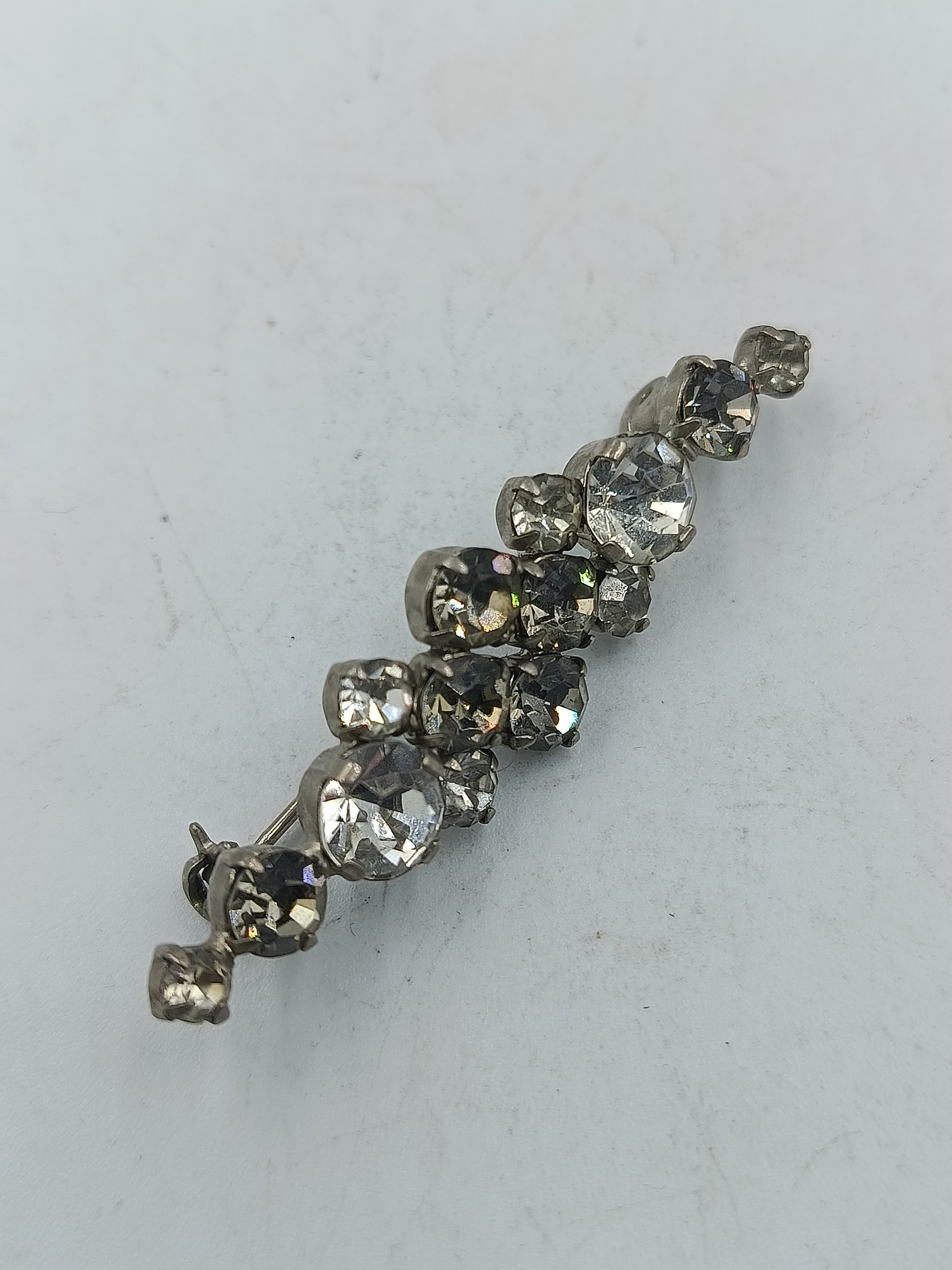 Vintage Strass Brosche silberfarben klare Kristalle elegant