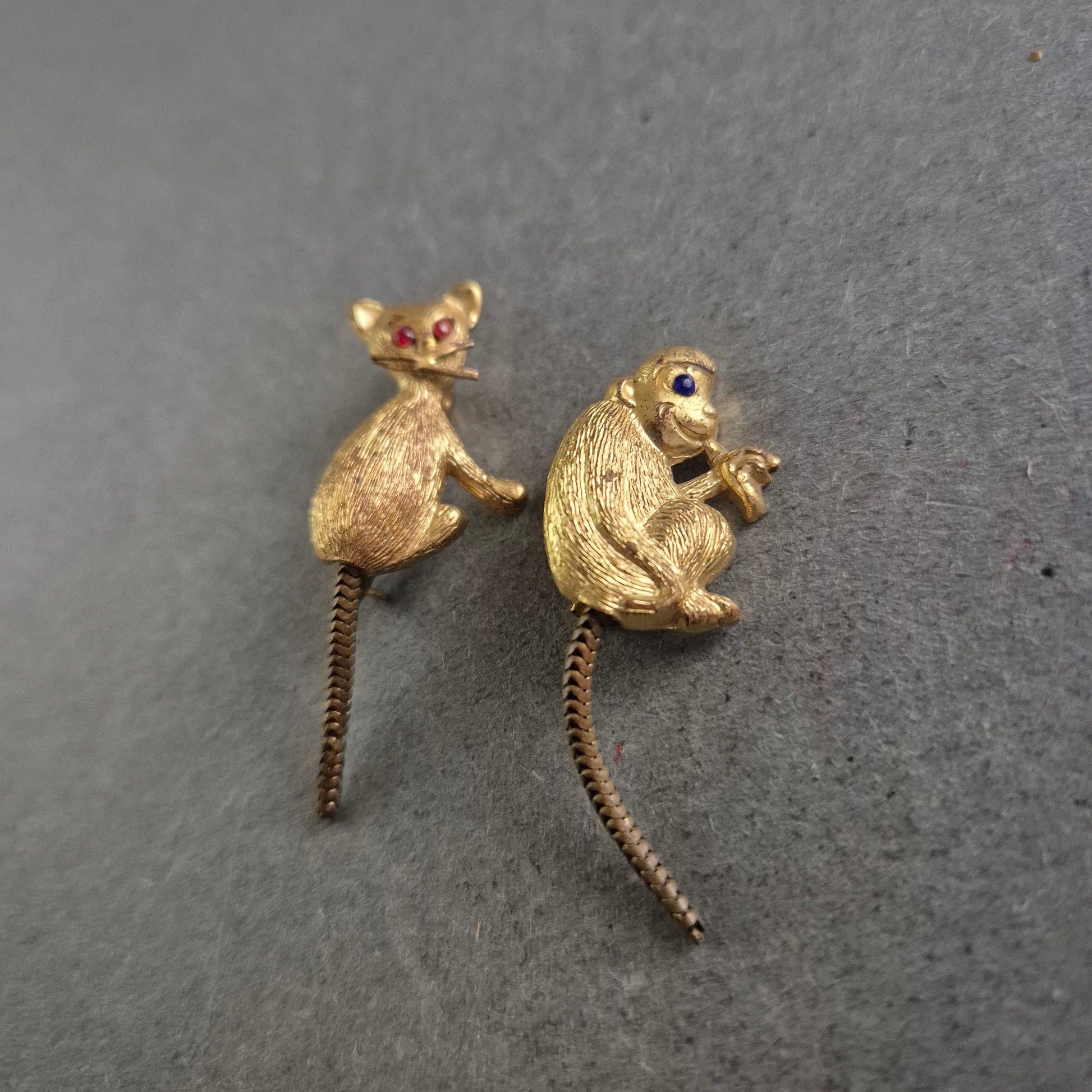 Vintage-Tierbroschen im Set – Affe & Katze mit beweglichem Schwanz