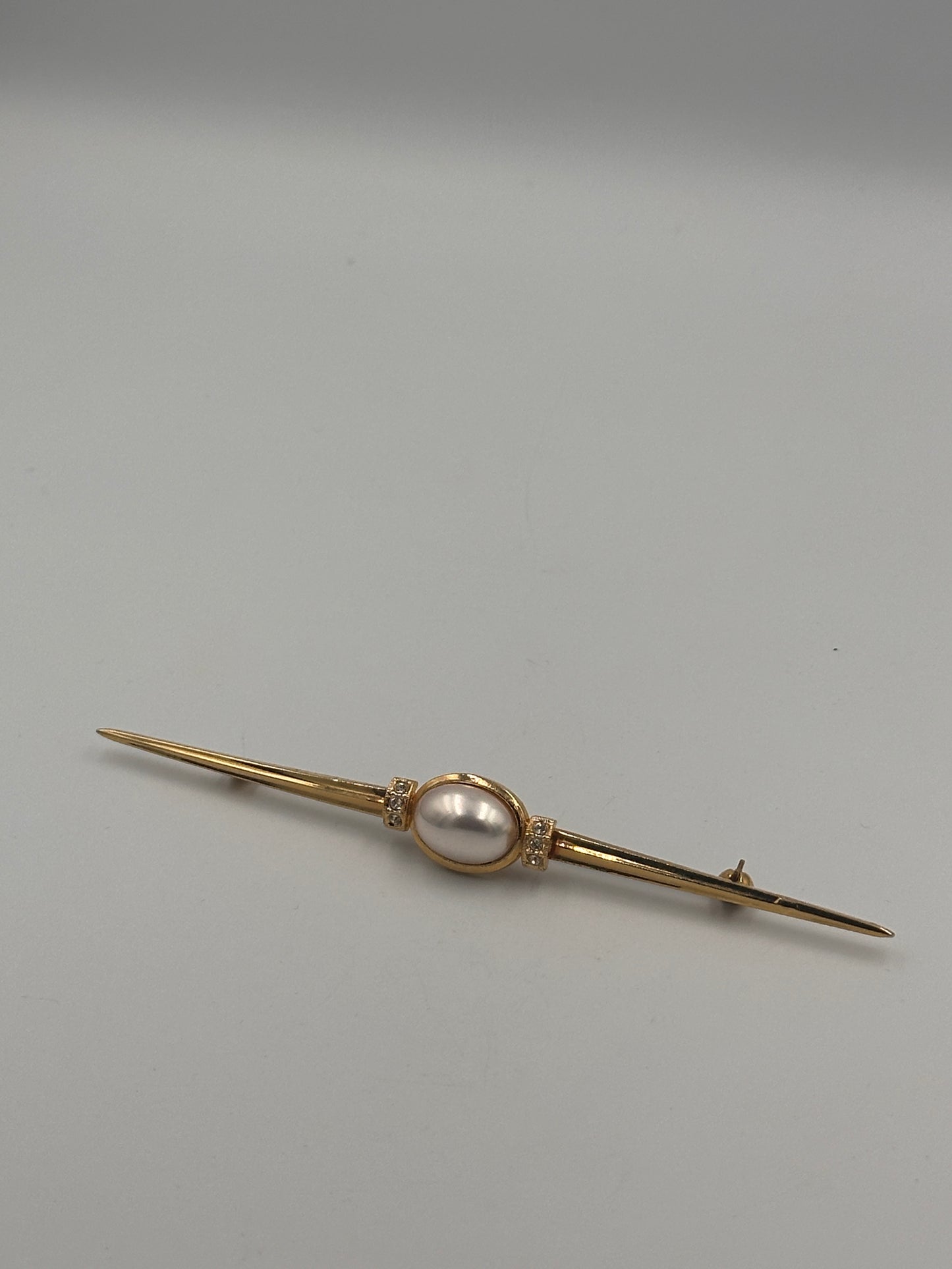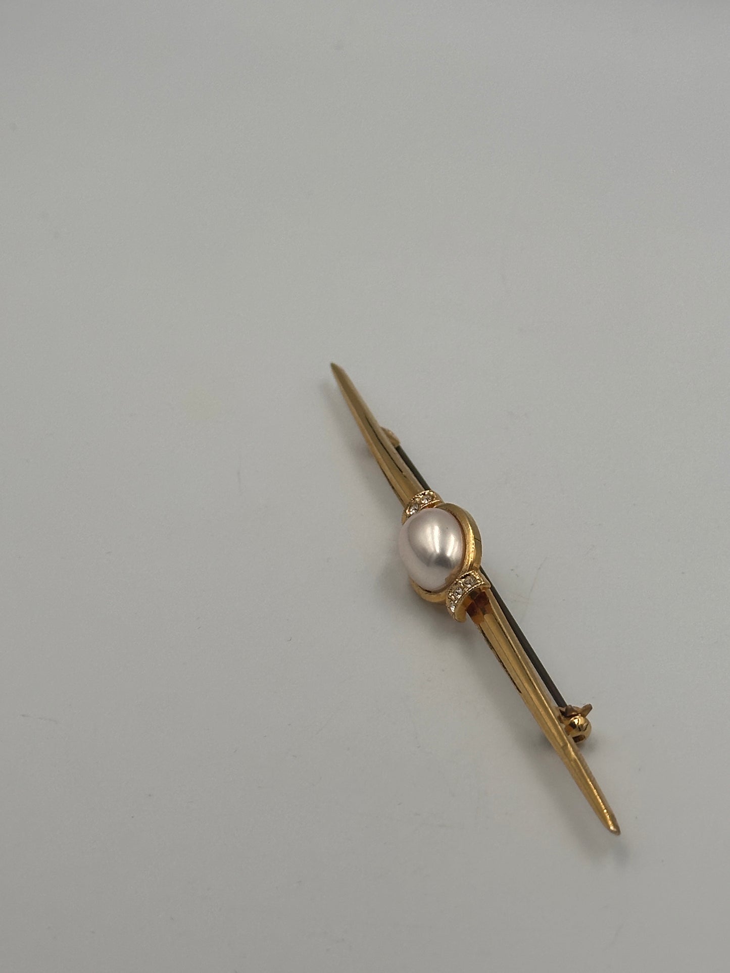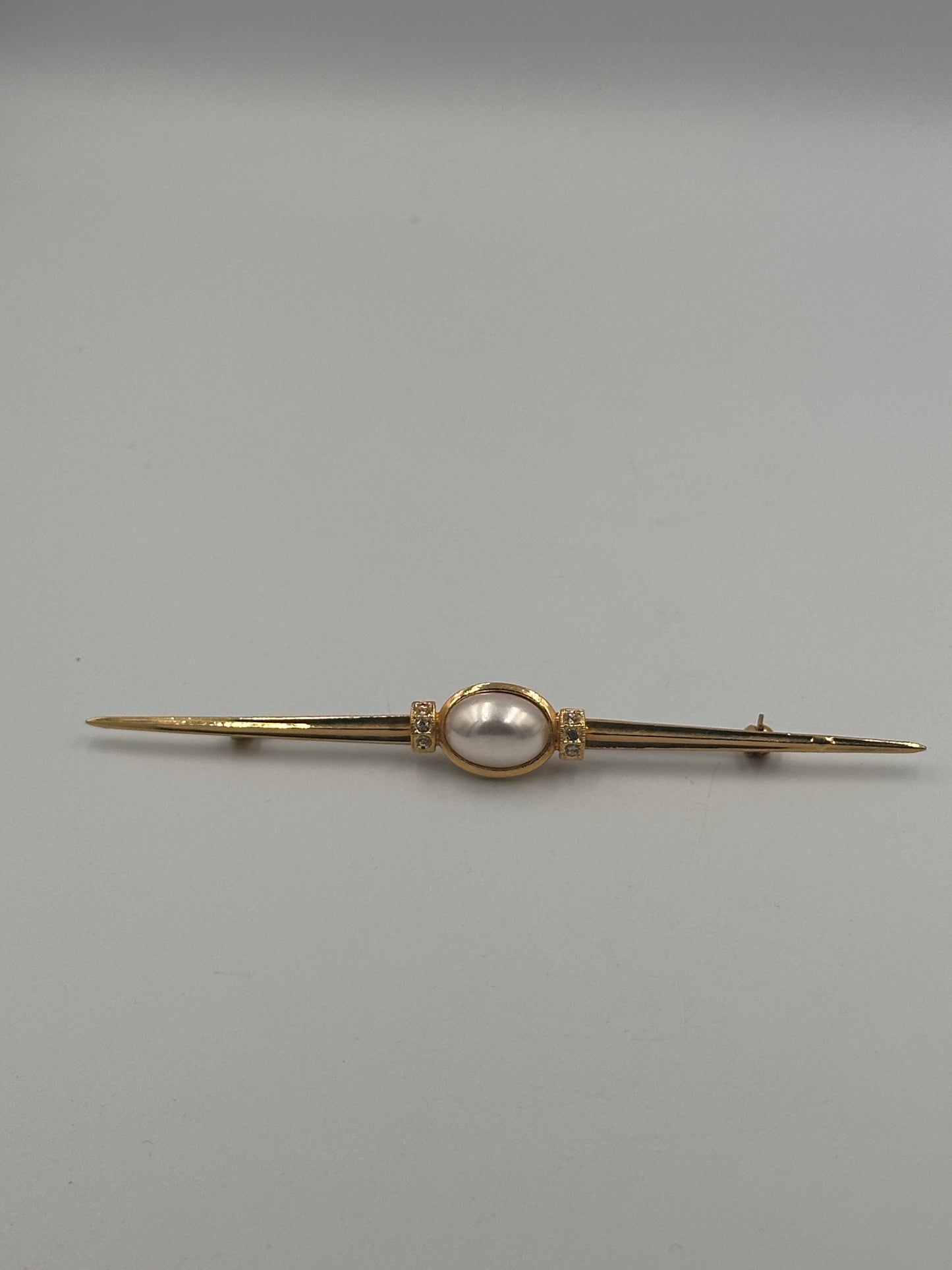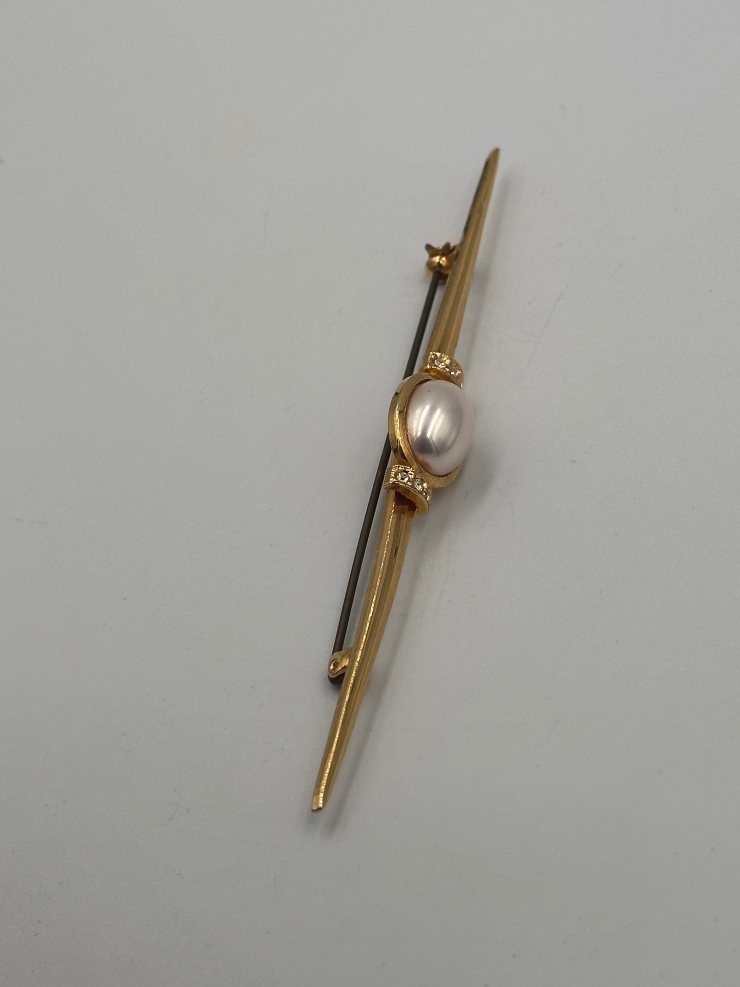 Vintage Vergoldete Brosche mit Zirkoniasteinen und Perle