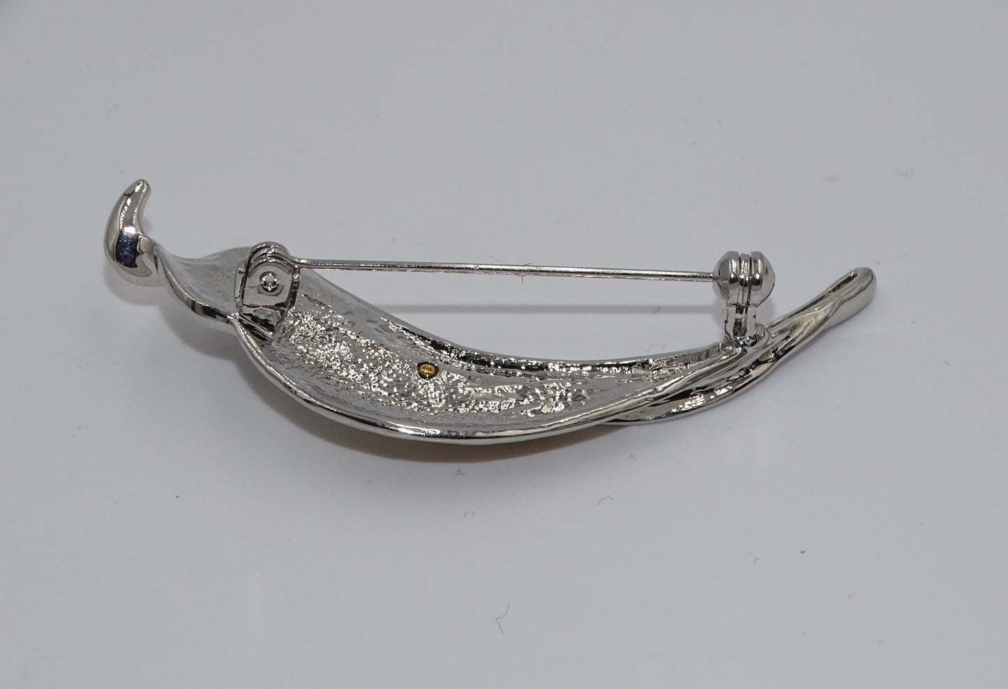 Diese elegante, zweifarbige Brosche im Vintage-Stil ist ein stilvolles Accessoire, das jedem Outfit einen Hauch von Nostalgie verleiht. Mit einer Länge von 6,5 cm und einer Breite von 1,3 cm hat sie die perfekte Größe, um an einer Jacke, einem Schal oder einer Bluse getragen zu werden. Das Stück wiegt 11,2 g und liegt angenehm an der Kleidung an.