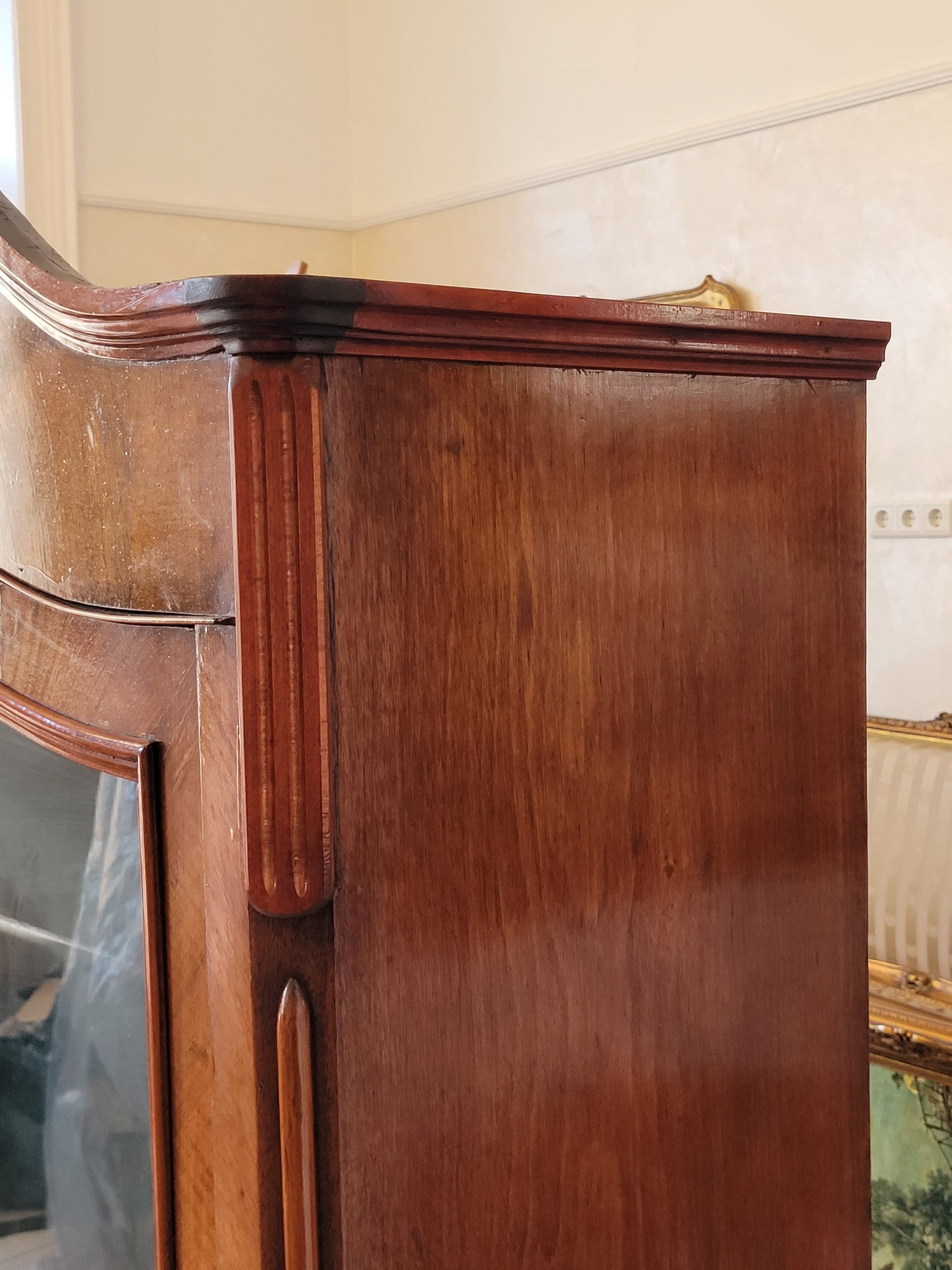 Vitrinenschrank – Nussbaum furniert mit Glasfüllungen – ca. 19./20. Jahrhundert