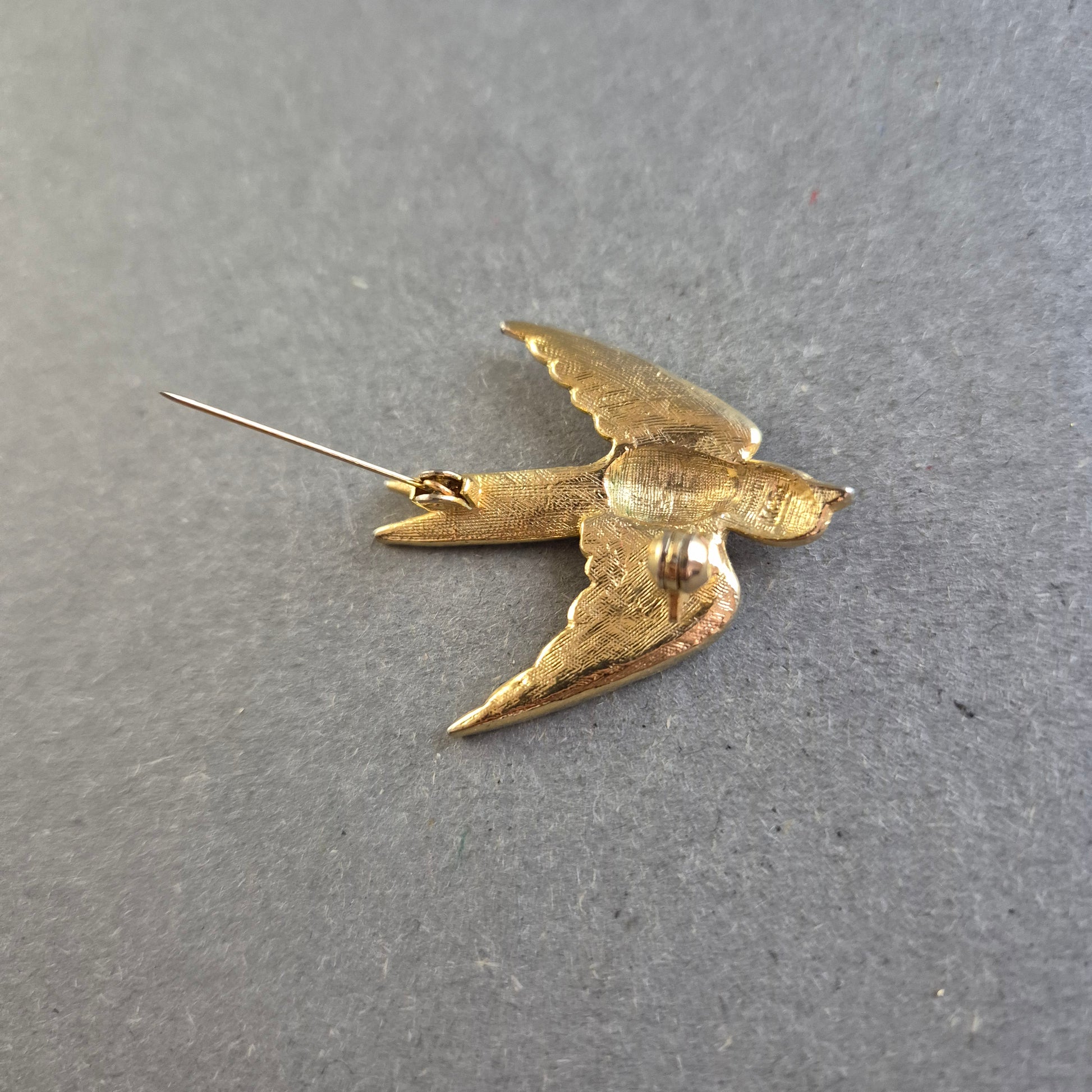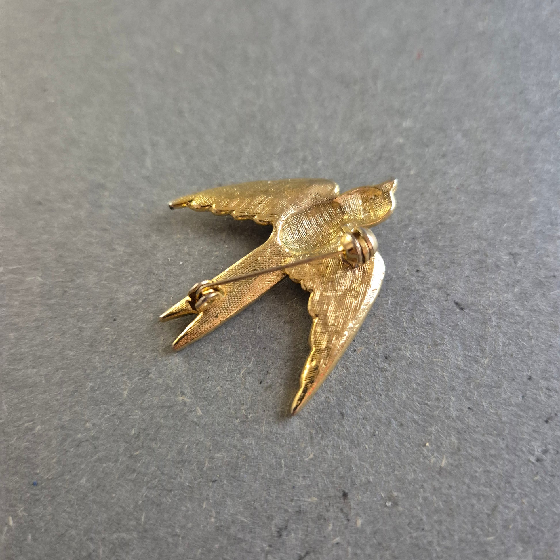 Vogel-Brosche mit Emaille & Strass – Goldblauer Vintage-Charme