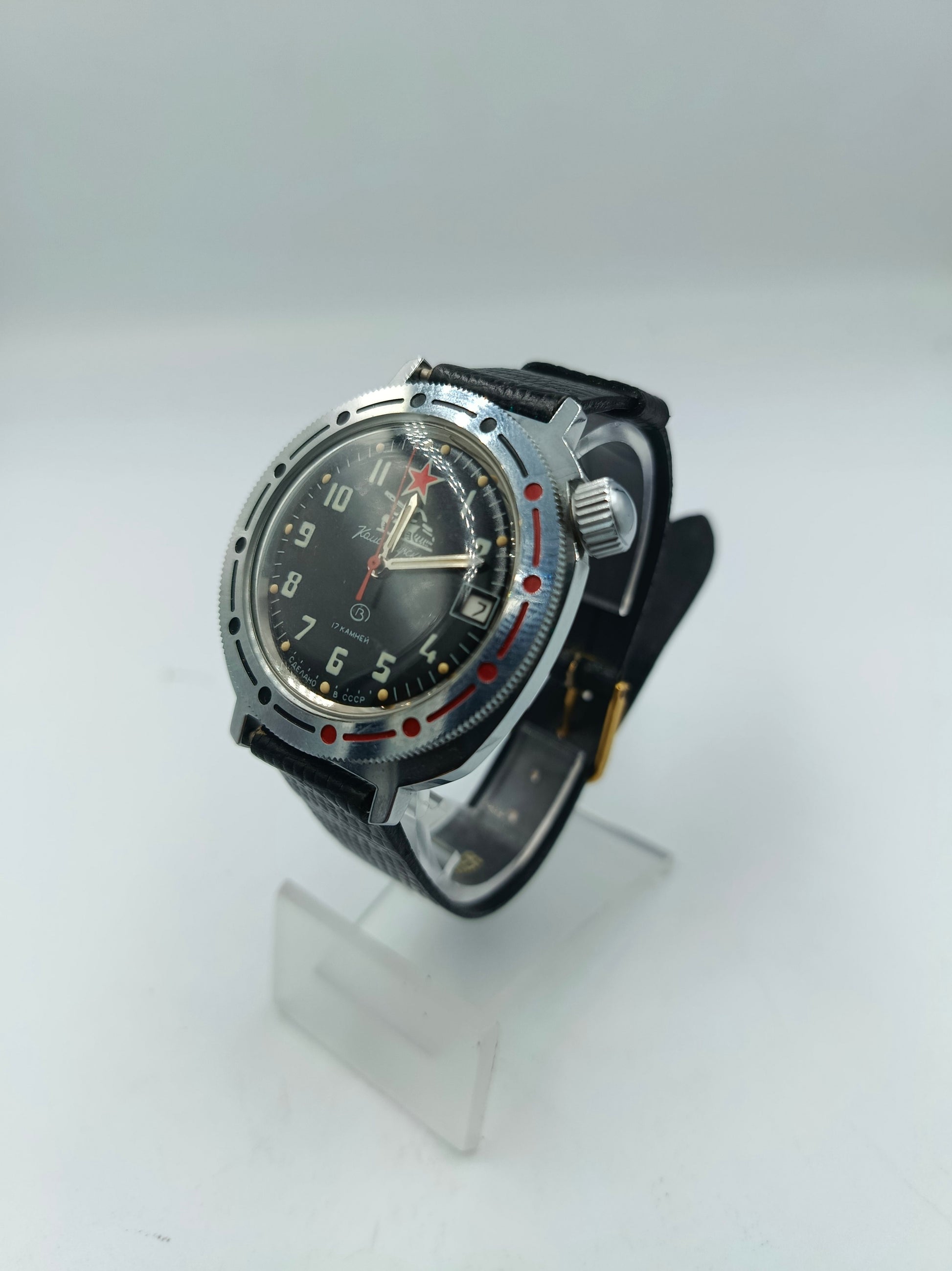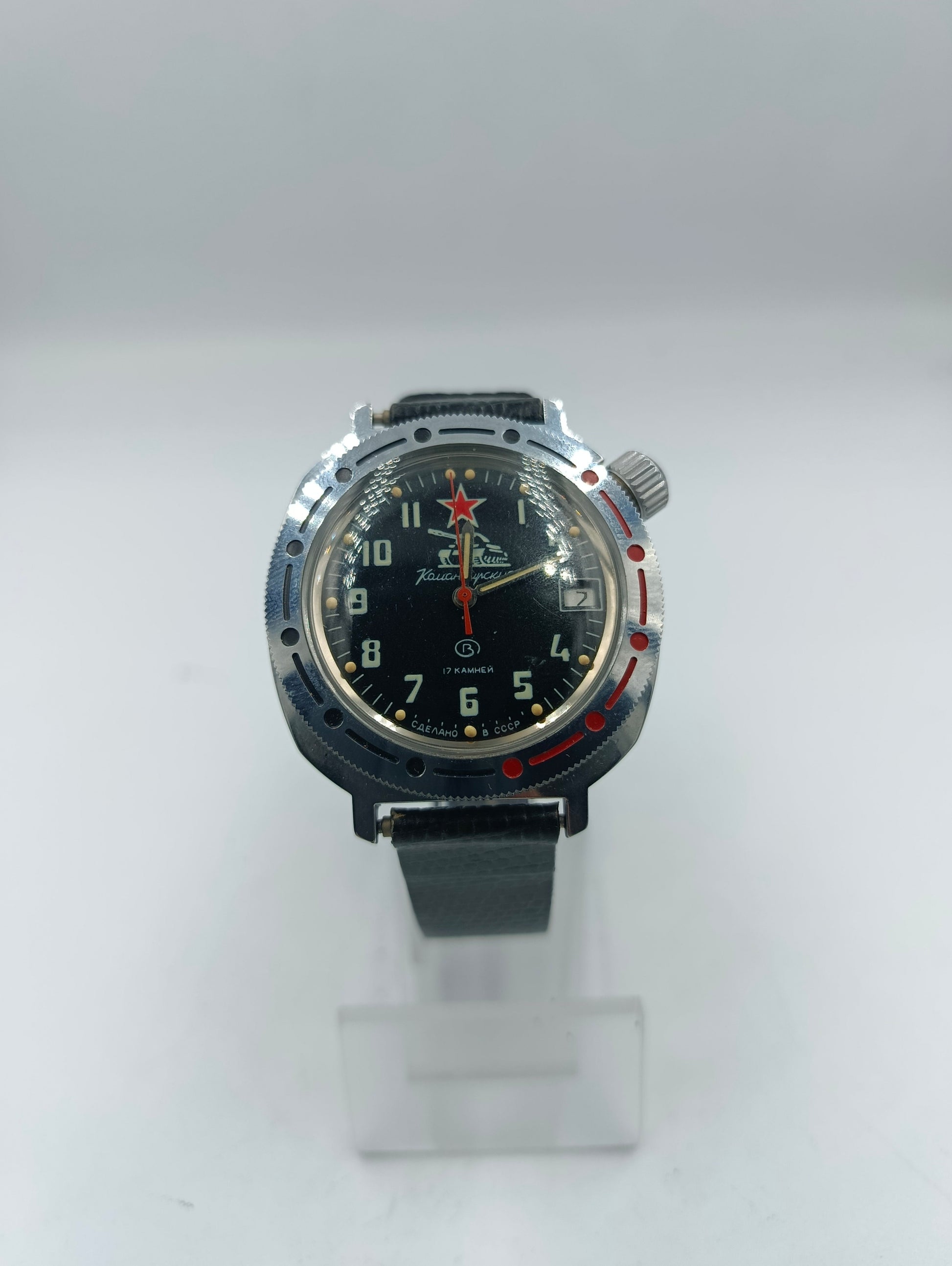 Seltene sowjetische Militäruhr von Vostok, Modell Komandirskie, gefertigt in der ehemaligen UdSSR. Diese mechanische Armbanduhr überzeugt mit klassischem Militärdesign und robustem Aufbau – ein echtes Sammlerstück für Liebhaber historischer Zeitmesser.