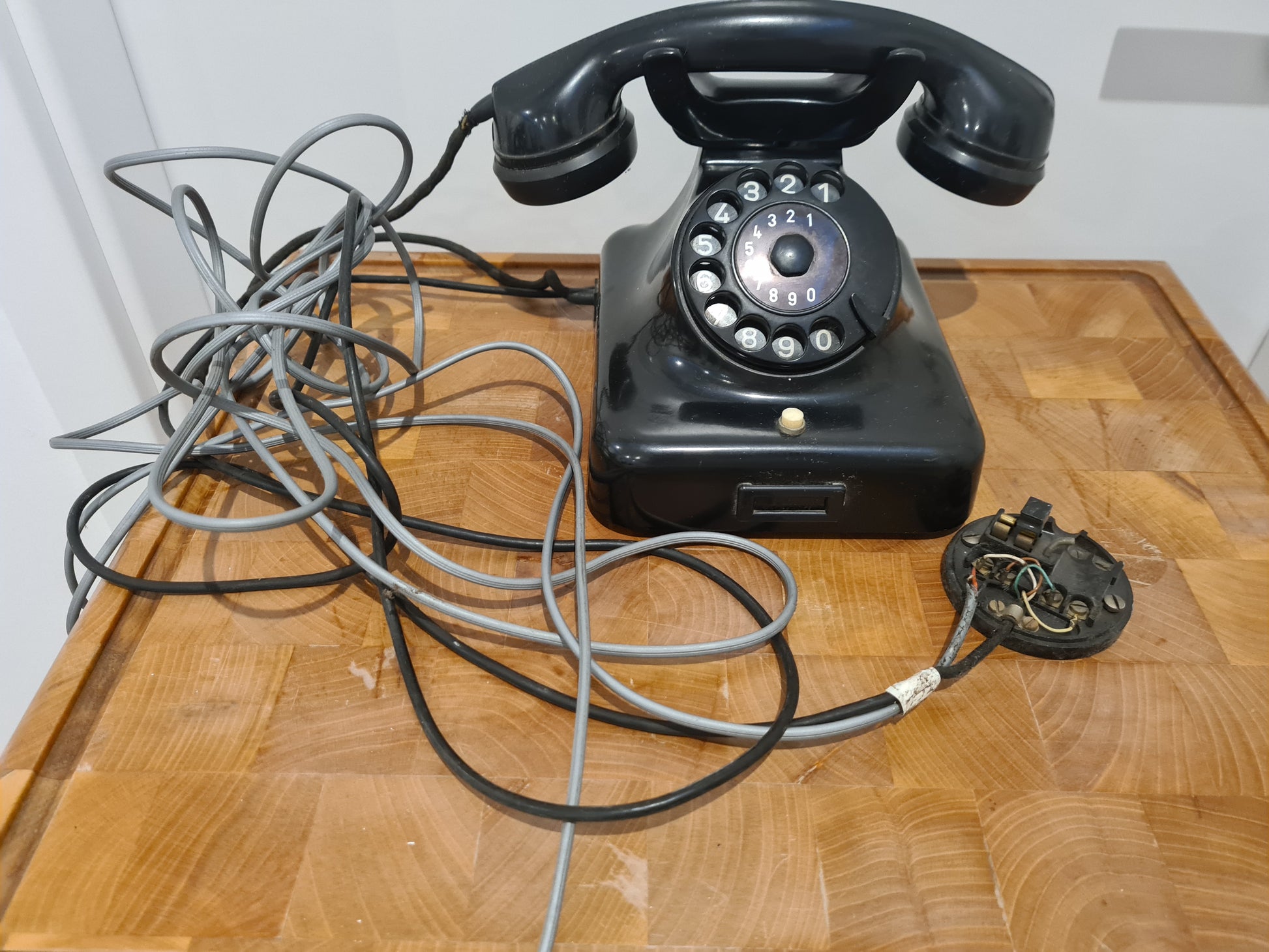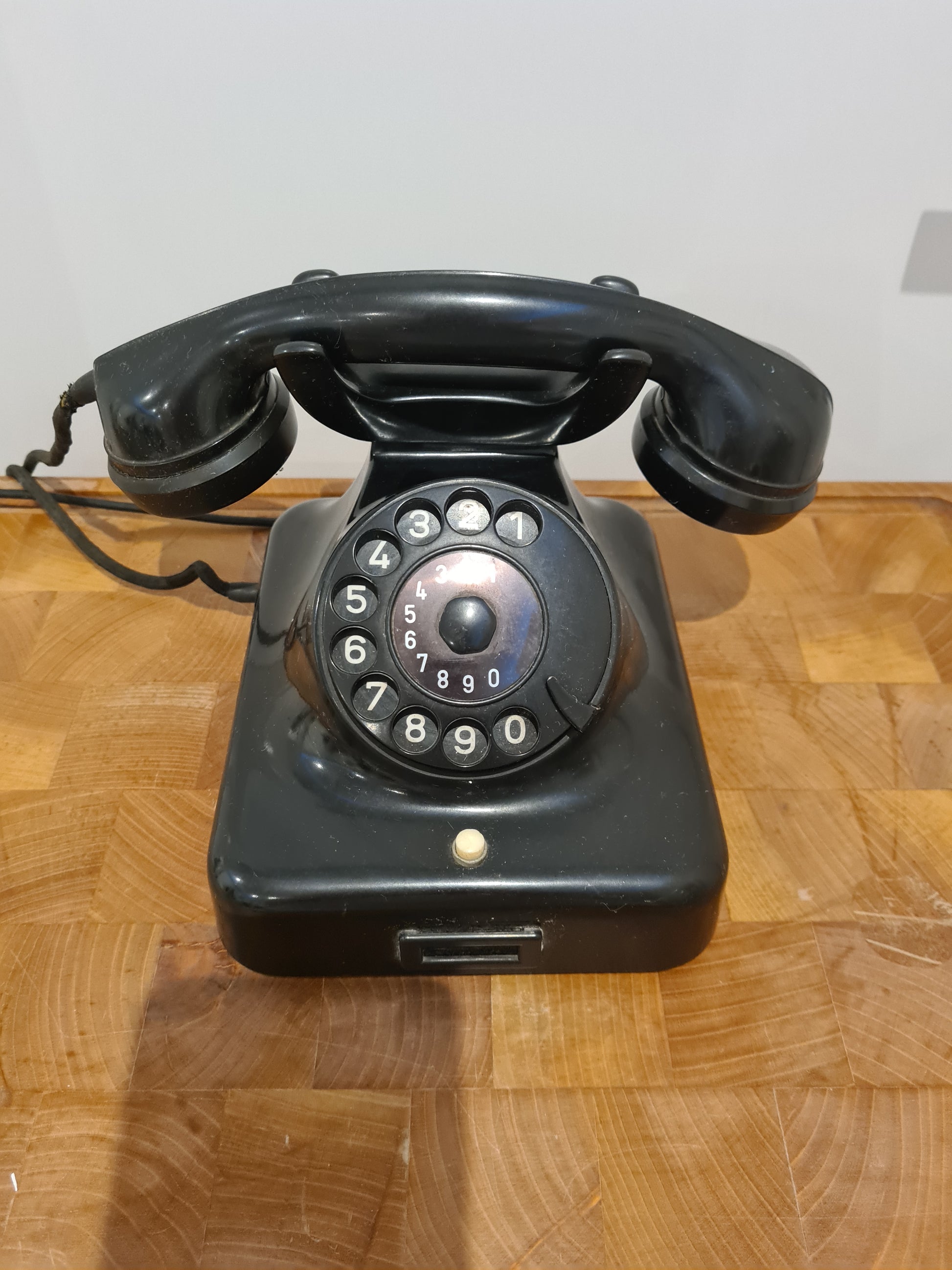 angeboten wird ein vintage W48m T Telefon der Marke KRONE. Dieser analoge Fernsprecher aus schwarzem Bakelit besticht durch sein klassisches Design und den nostalgischen Charme.