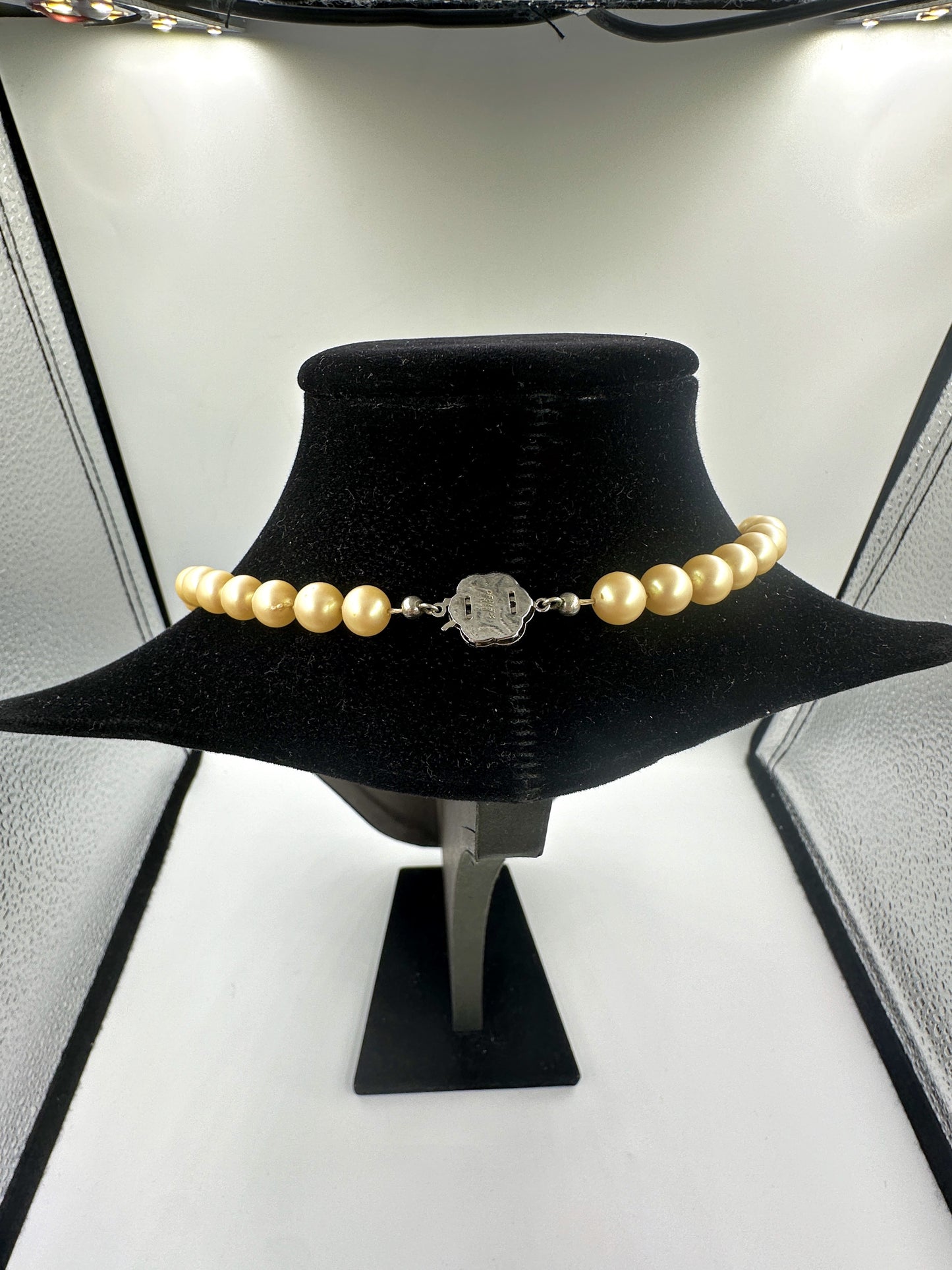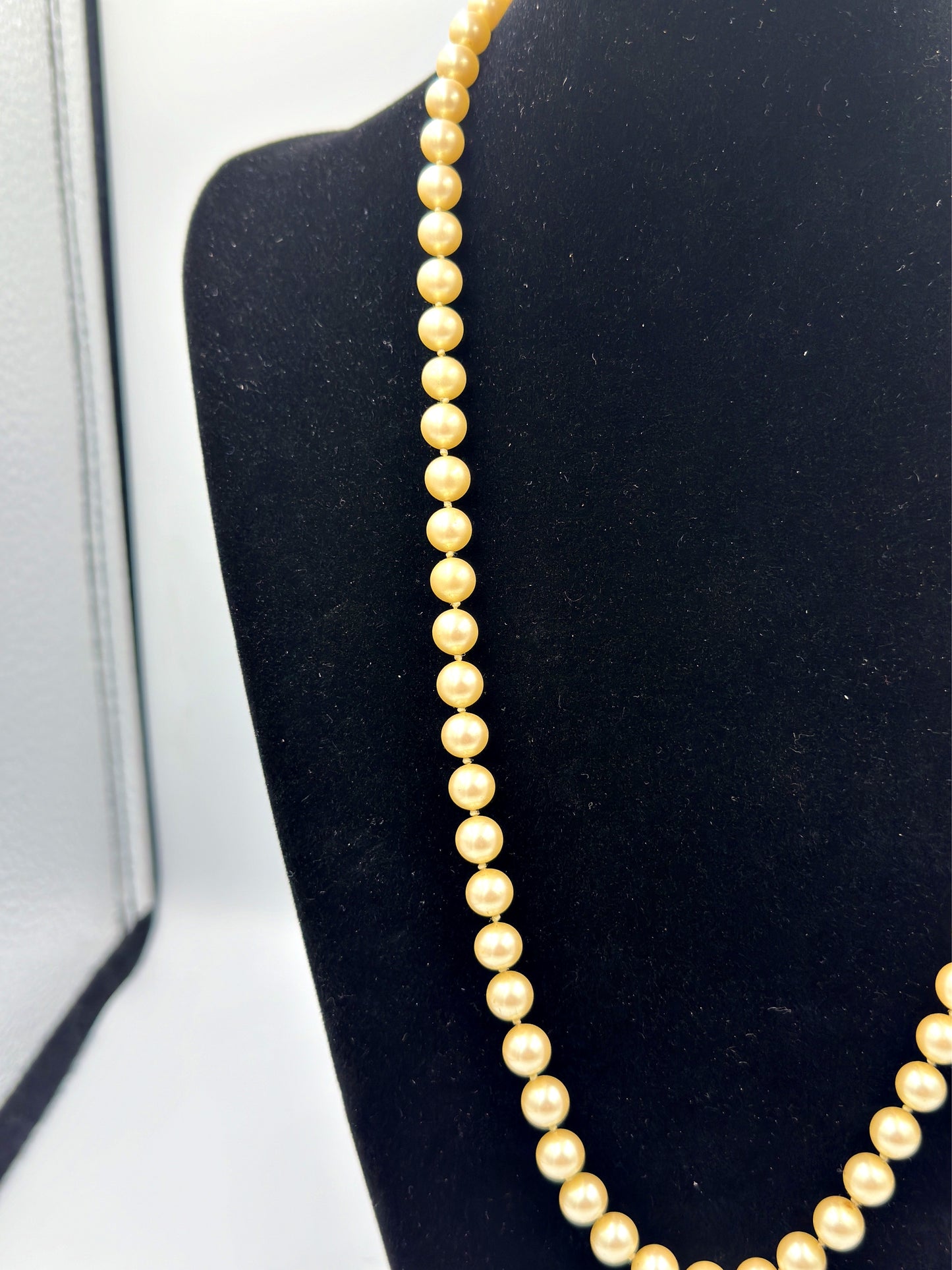 Diese elegante weiße Perlenkette ist ein zeitloses Schmuckstück, das durch ihren hochwertigen 925 Sterling Silberverschluss zusätzlich an Wert gewinnt. Mit einer Länge von 60 cm bietet die Kette eine ideale Länge, um vielseitig getragen zu werden. Das Gesamtgewicht von 52,7 Gramm sorgt für ein angenehmes Tragegefühl. Trotz ihres gebrauchten Zustands ist die Perlenkette gut erhalten und stellt eine stilvolle Ergänzung zu jedem Outfit dar. Perfekt für besondere Anlässe oder als edles Accessoire im Alltag.