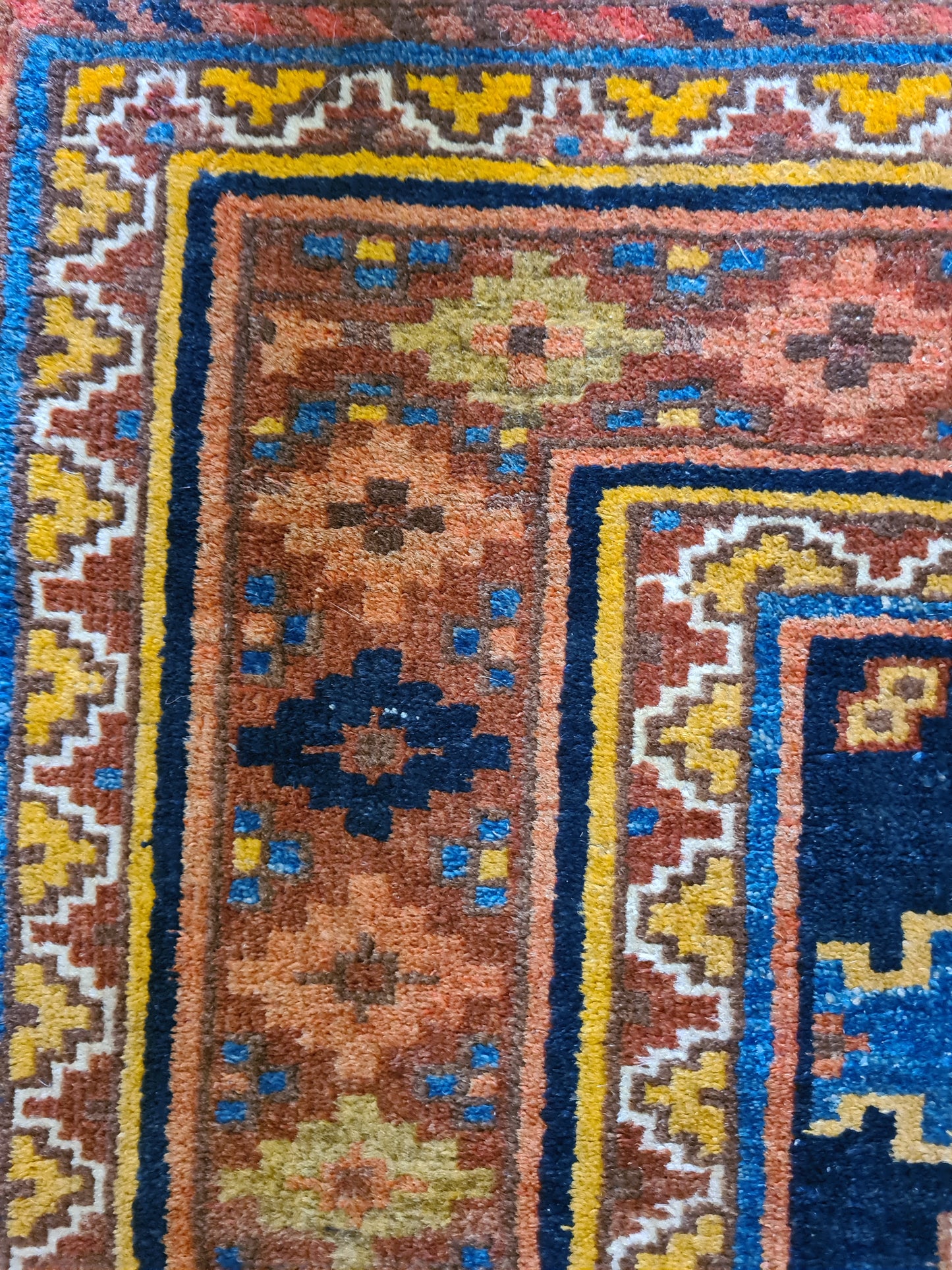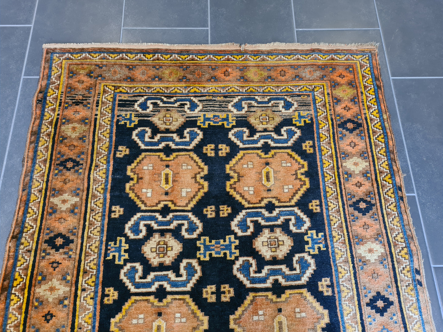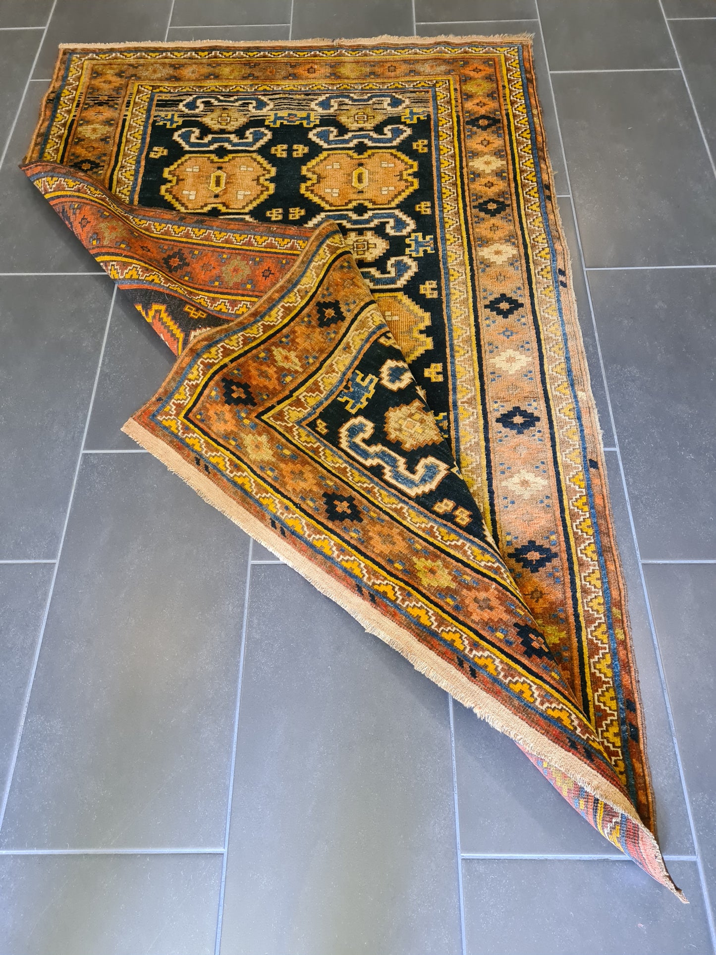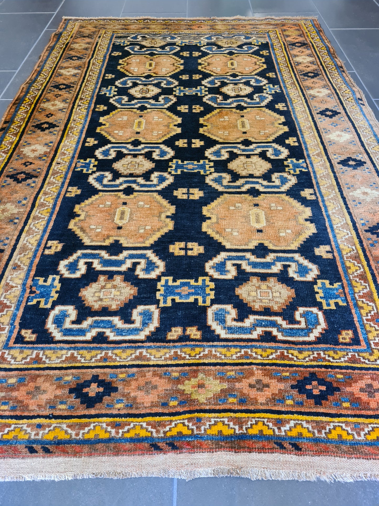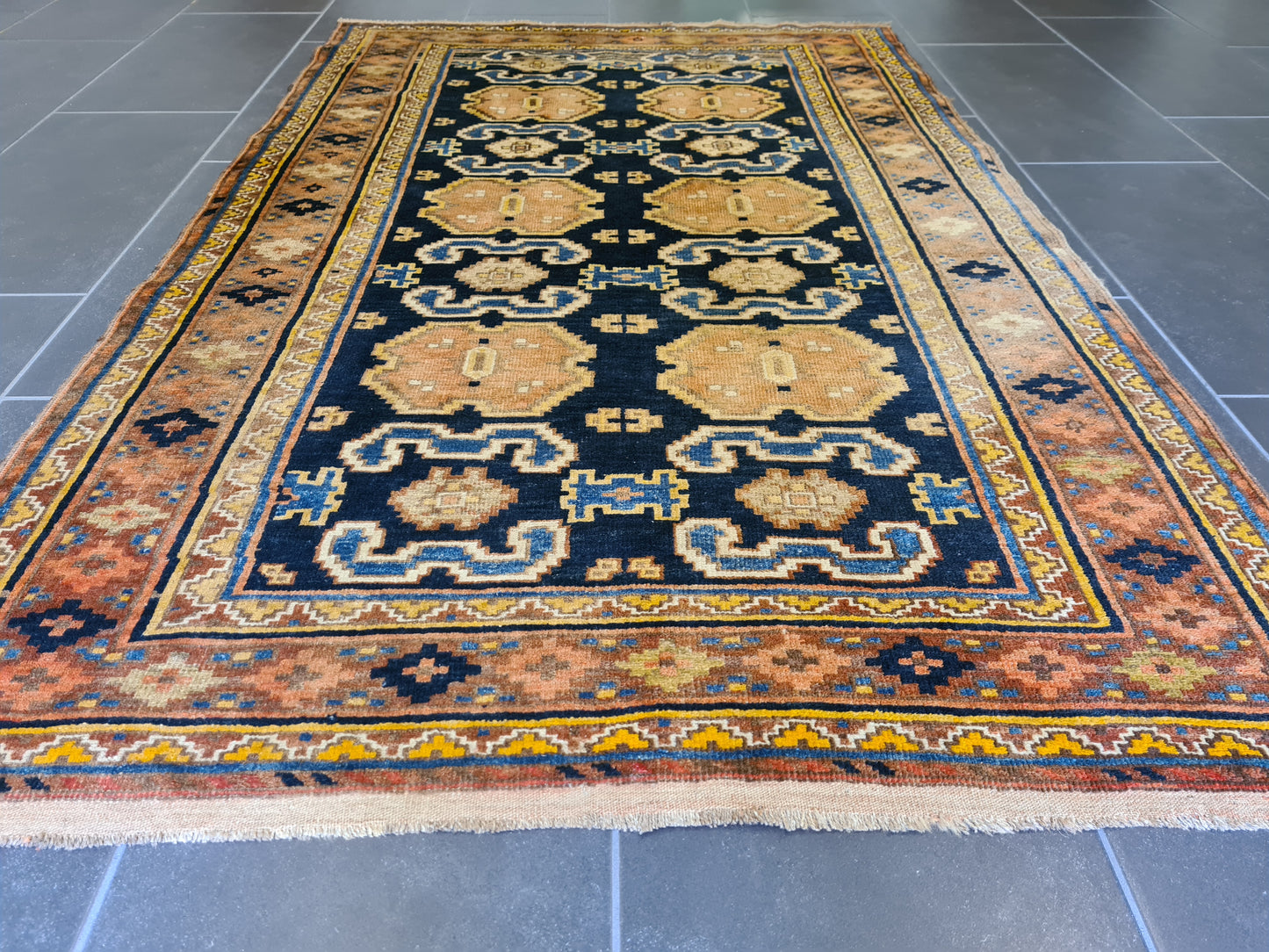 Beschreibung: Dieser wertvolle antike Kasak Orientteppich ist ein echtes Kunstwerk, das sowohl Sammler als auch Liebhaber feiner Handwerkskunst begeistern wird. Die exquisite Verarbeitung und die hohe Knotendichte zeugen von der herausragenden Qualität und der traditionellen Technik, die in jedem Knoten steckt. Mit seinem historischen Wert und der eleganten Ästhetik ist dieser Teppich ein Blickfang und eine wertvolle Ergänzung für jede anspruchsvolle Einrichtung.