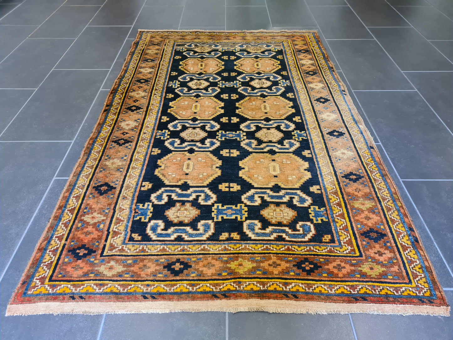 Ideal für elegante Wohnräume, repräsentative Büros oder als zentrales Stück in einer Kunstsammlung – dieser Teppich bringt eine einzigartige Atmosphäre und einen Hauch von Geschichte in jeden Raum. Lassen Sie sich von der zeitlosen Schönheit und der meisterhaften Handwerkskunst dieses seltenen Kasak Teppichs aus dem Kaukasus verzaubern.