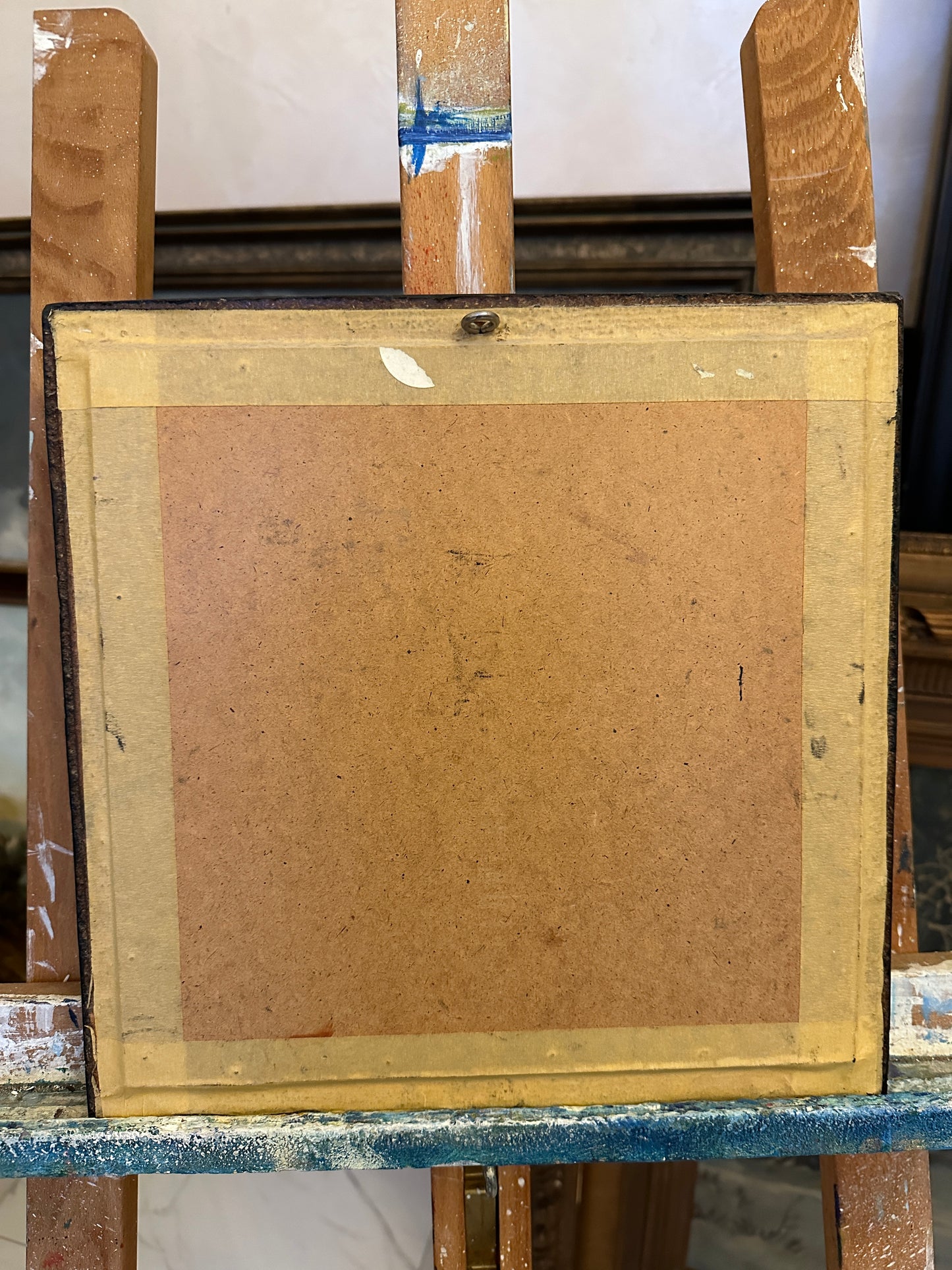 Mit Maßen von 33x33cm inklusive Rahmen und 19x13cm ohne Rahmen, hat dieses kleine Kunstwerk eine kompakte Größe, die es vielseitig platzierbar macht. Der Zustand ist sehr gut, wie auf den Fotos zu sehen ist, was dieses Gemälde zu einer wunderbaren Ergänzung für jede Sammlung oder Raumgestaltung macht.