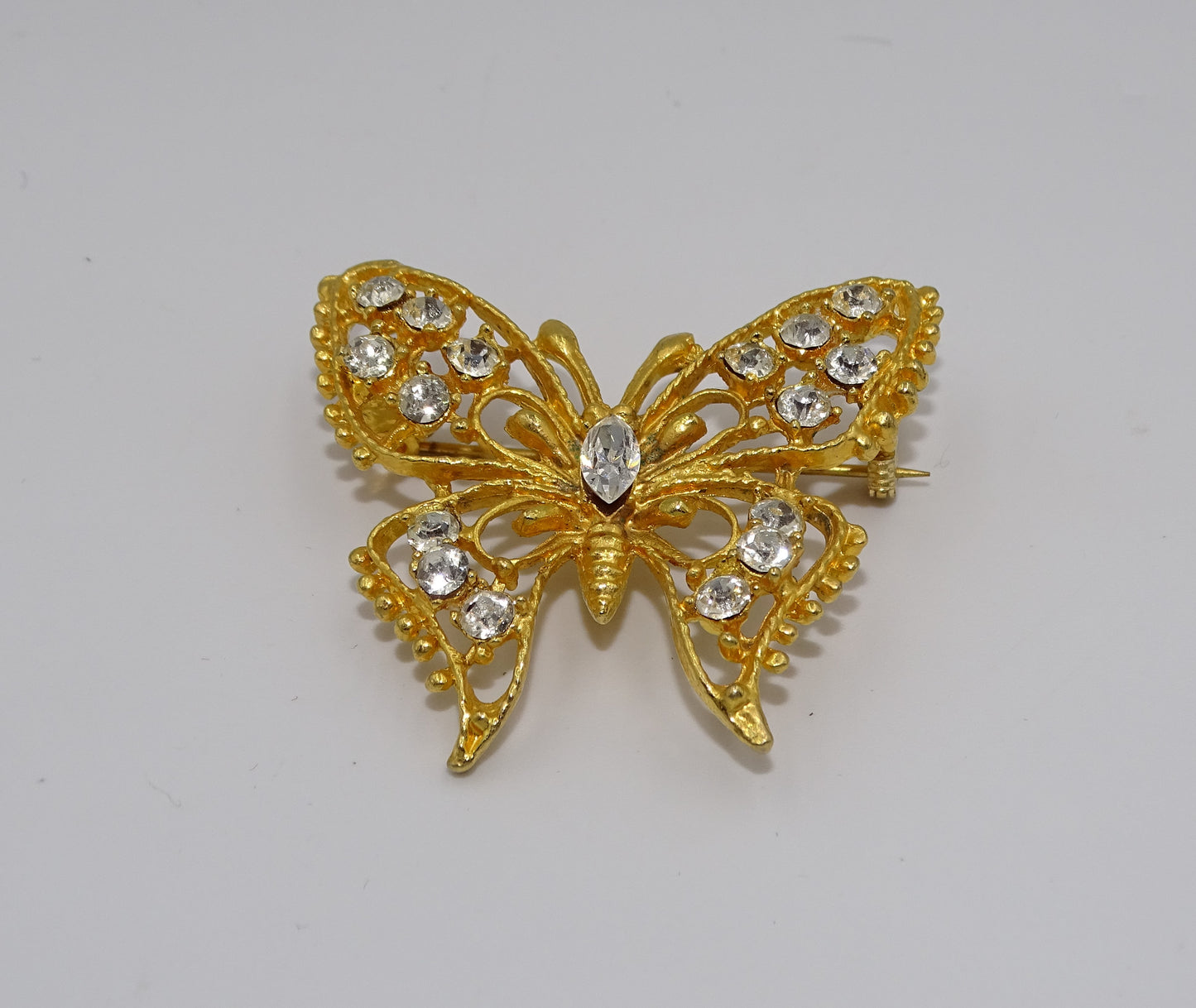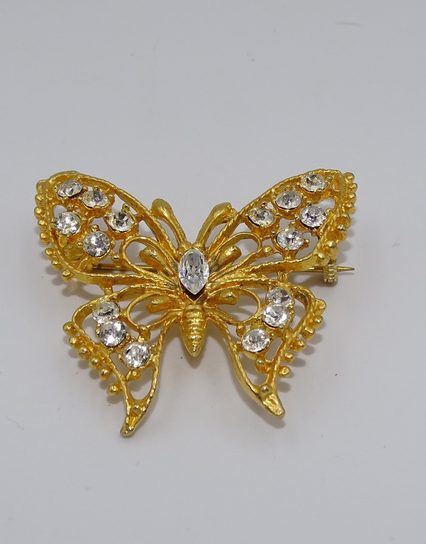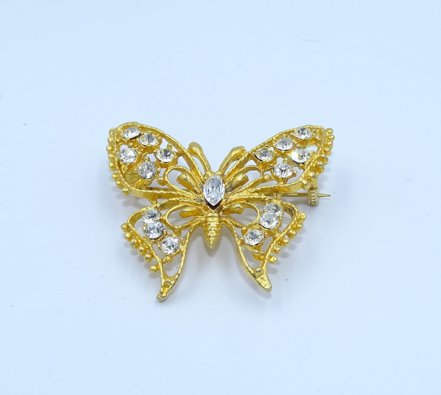 Wunderschöne Vergoldete Brosche mit Strasssteinen im Schmetterlingsdesign