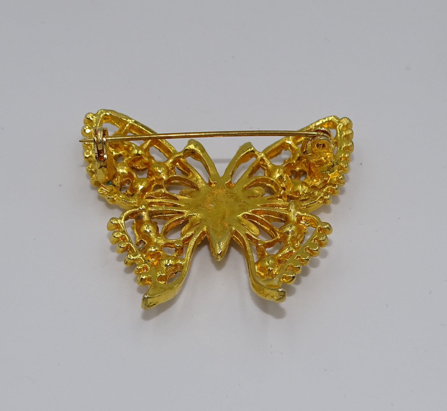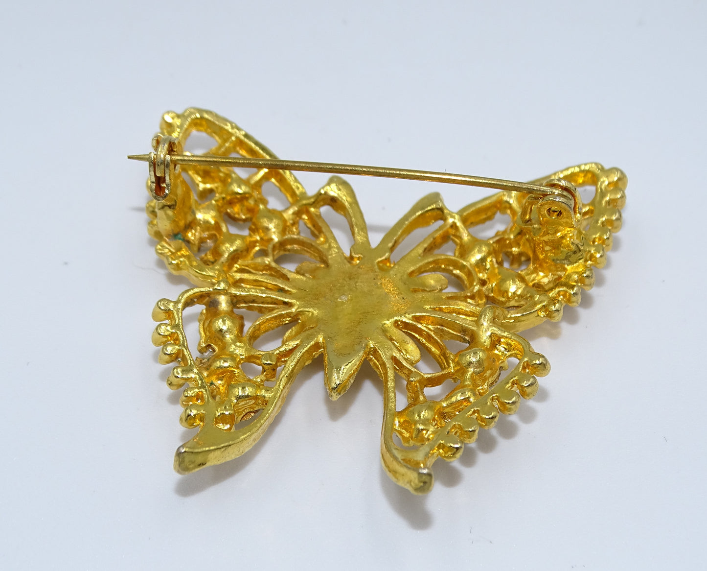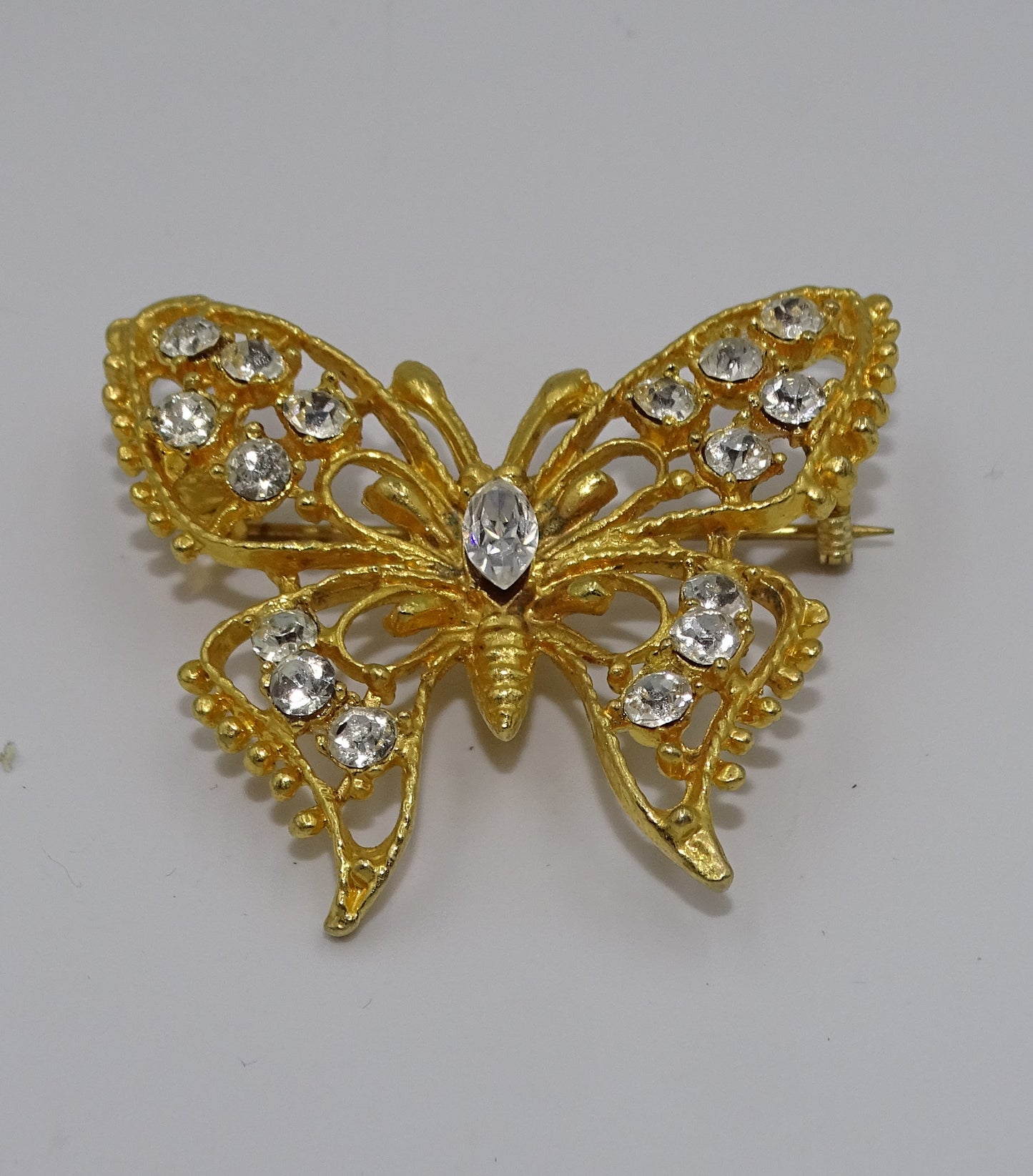 Wunderschöne Vergoldete Brosche mit Strasssteinen im Schmetterlingsdesign