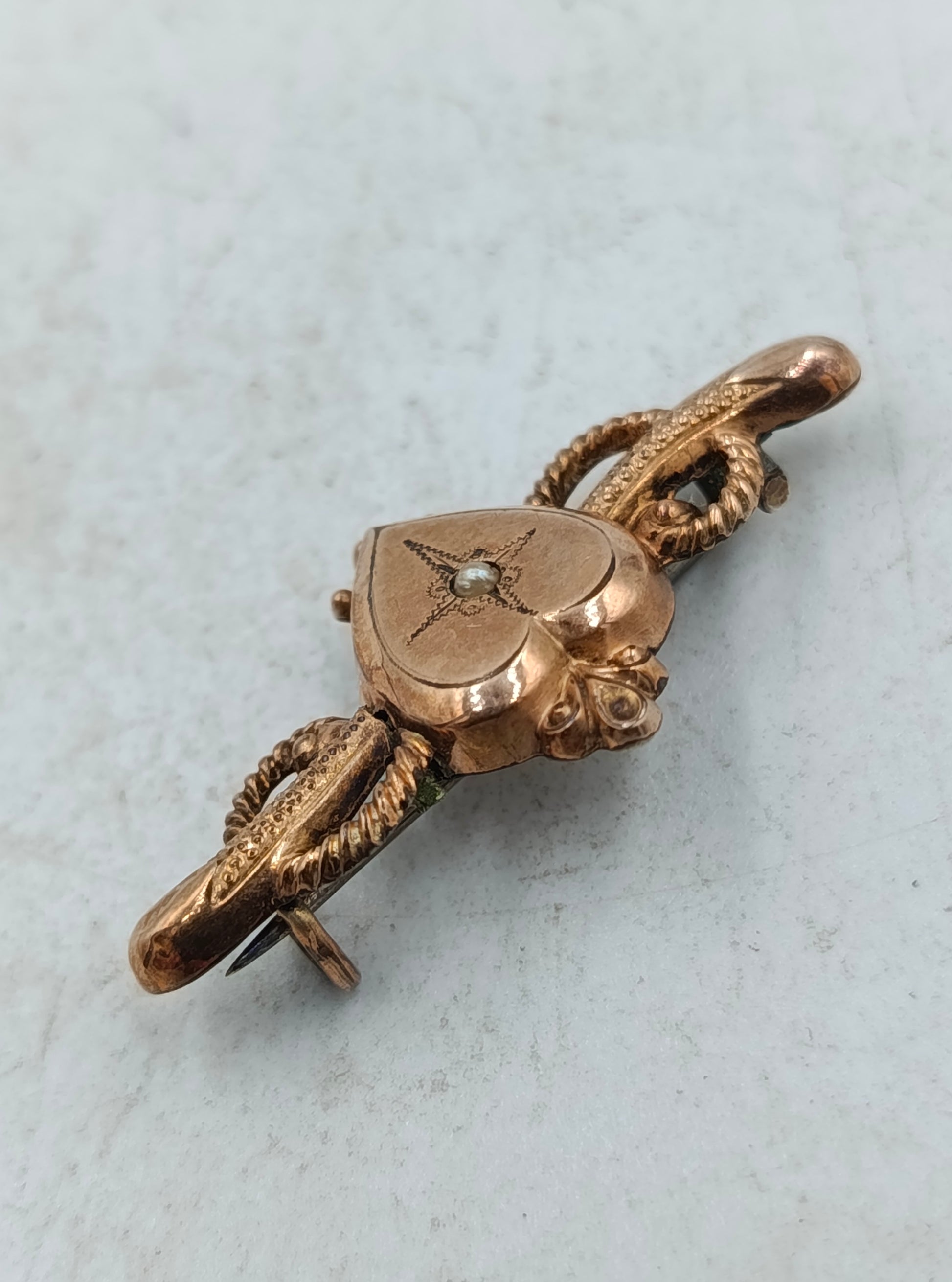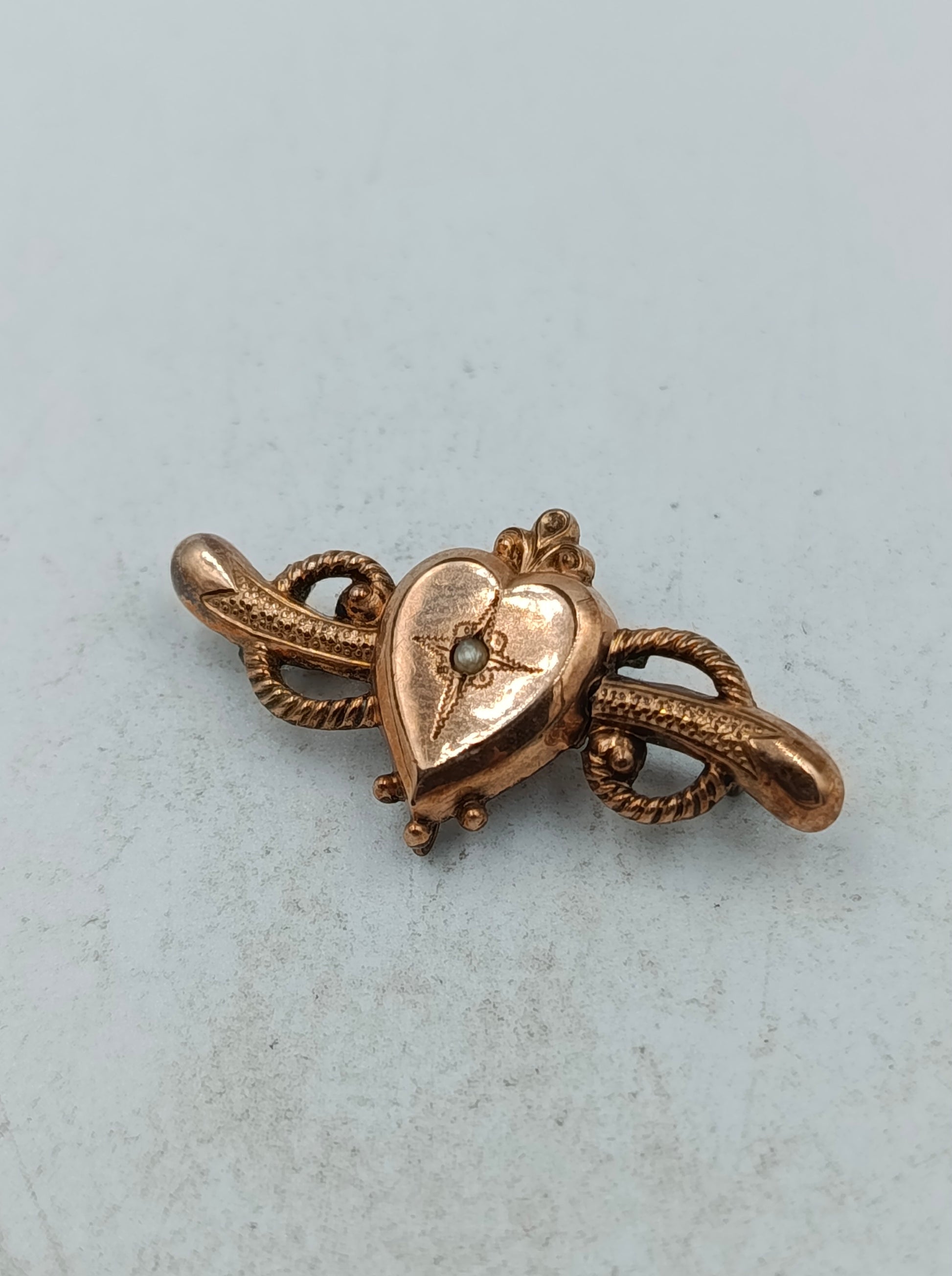 Zarte Brosche in Herzform mit romantischem Design und feinen Verzierungen