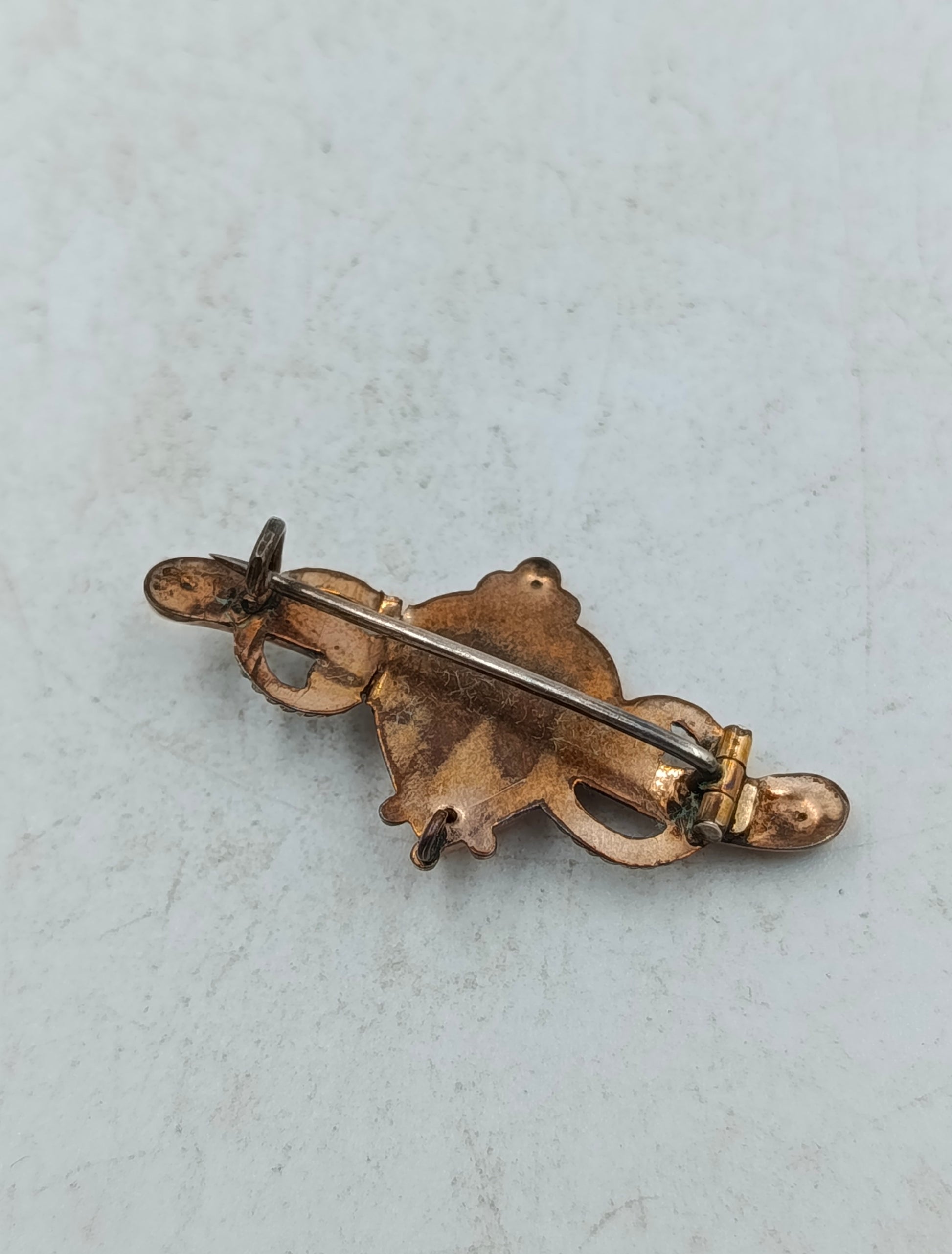 Diese filigrane Brosche überzeugt durch ihr liebevoll gestaltetes Herzmotiv in warmer Metalloptik. Die verspielten seitlichen Ornamente und die feine Verzierung im Zentrum verleihen dem Schmuckstück eine romantische Ausstrahlung. Durch ihre kompakte Größe eignet sich die Brosche ideal als dezenter Akzent an Bluse Jacke oder Schal und ergänzt klassische wie auch nostalgische Outfits auf elegante Weise.