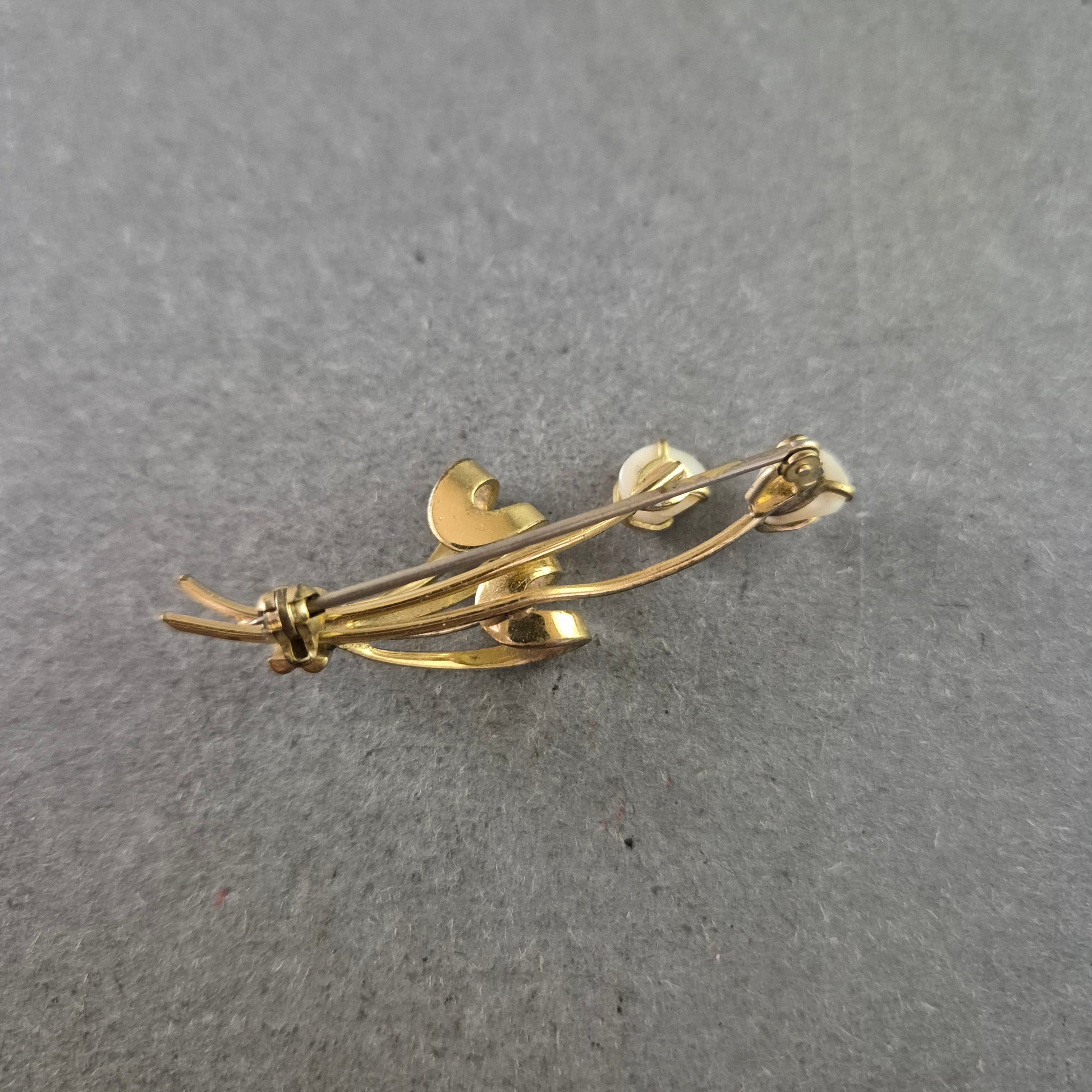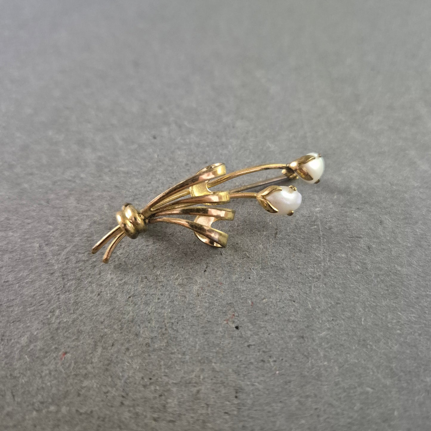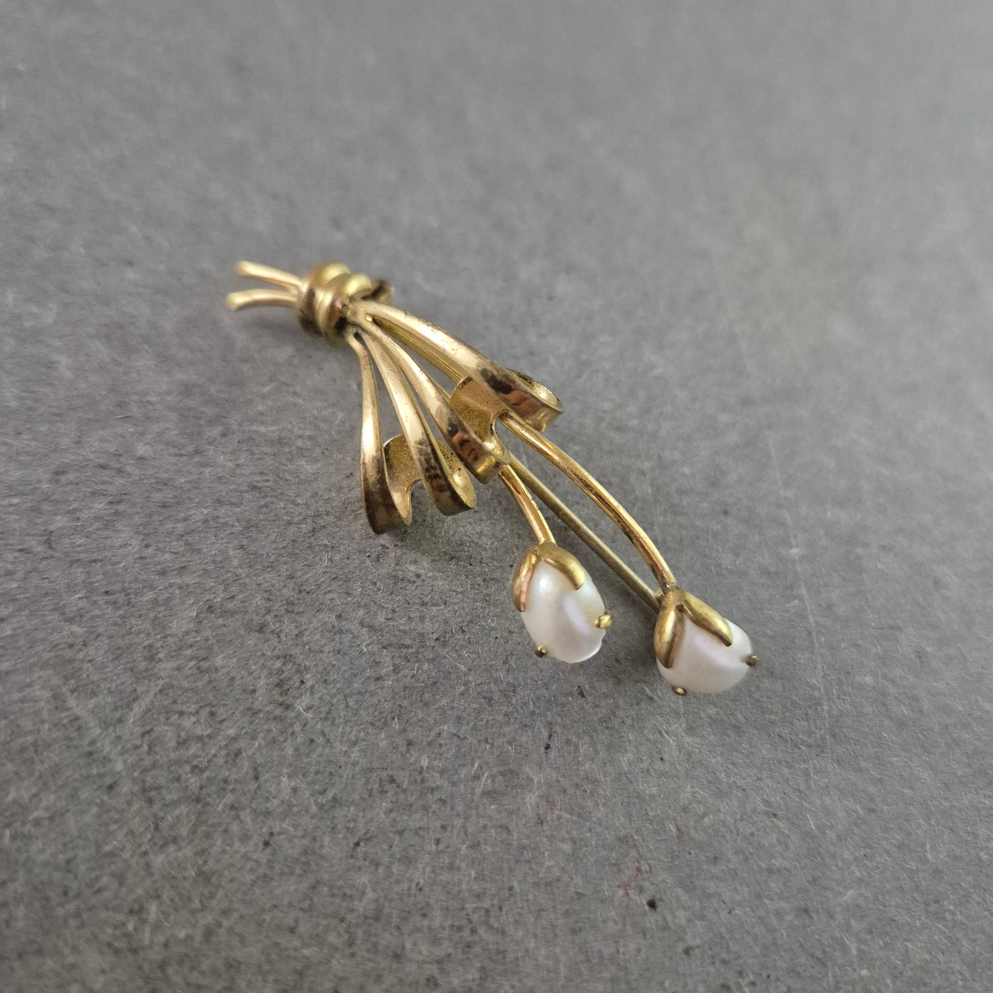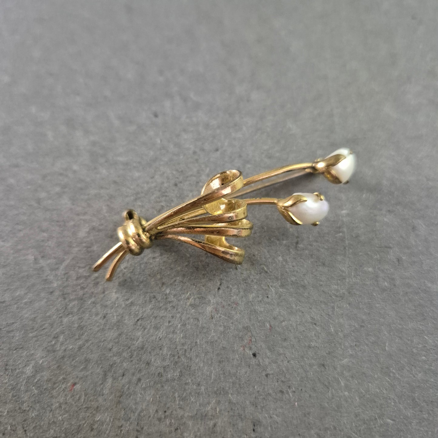Zarte Vintage Brosche mit Perlen – Blumenstrauß Motiv