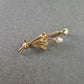 Diese entzückende Vintage Brosche verzaubert mit ihrem zarten Design, das einen stilisierten Blumenstrauß darstellt. Gefertigt aus goldfarbenem Metall, werden die Blütenköpfe durch kleine, schimmernde Perlen akzentuiert. Ein zeitloses Accessoire, das jedem Outfit einen Hauch von Vintage-Eleganz verleiht. Perfekt zum Anstecken an Revers, Schal oder Tasche.