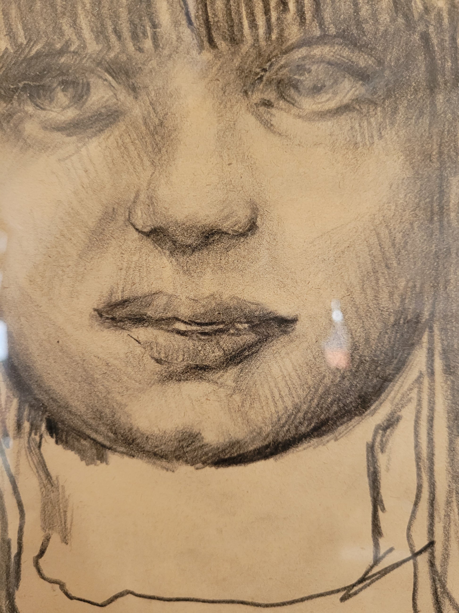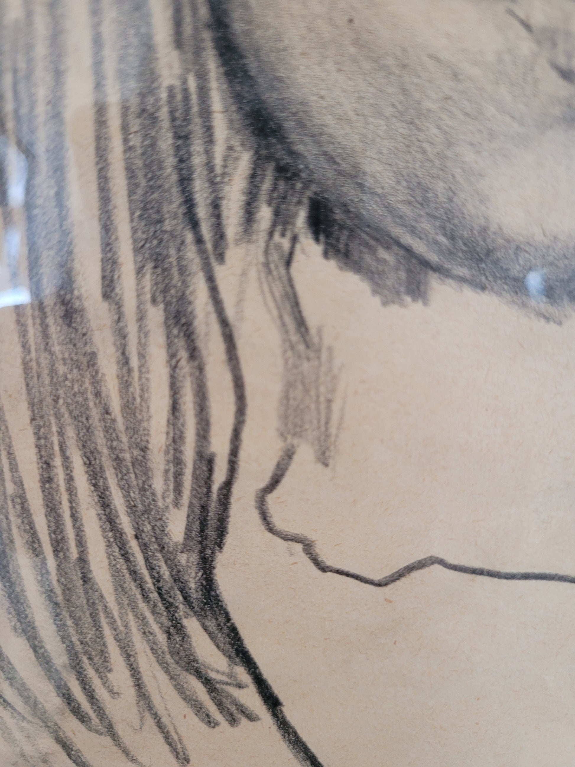 Mit Maßen von 35x26 cm im Rahmen und 30x20 cm ohne Rahmen ist diese Zeichnung eine ausgezeichnete Wahl für Liebhaber realistischer Kunst und Sammler von meisterhaften Skizzen. Der Zustand ist sehr gut, wie auf den Fotos zu sehen.