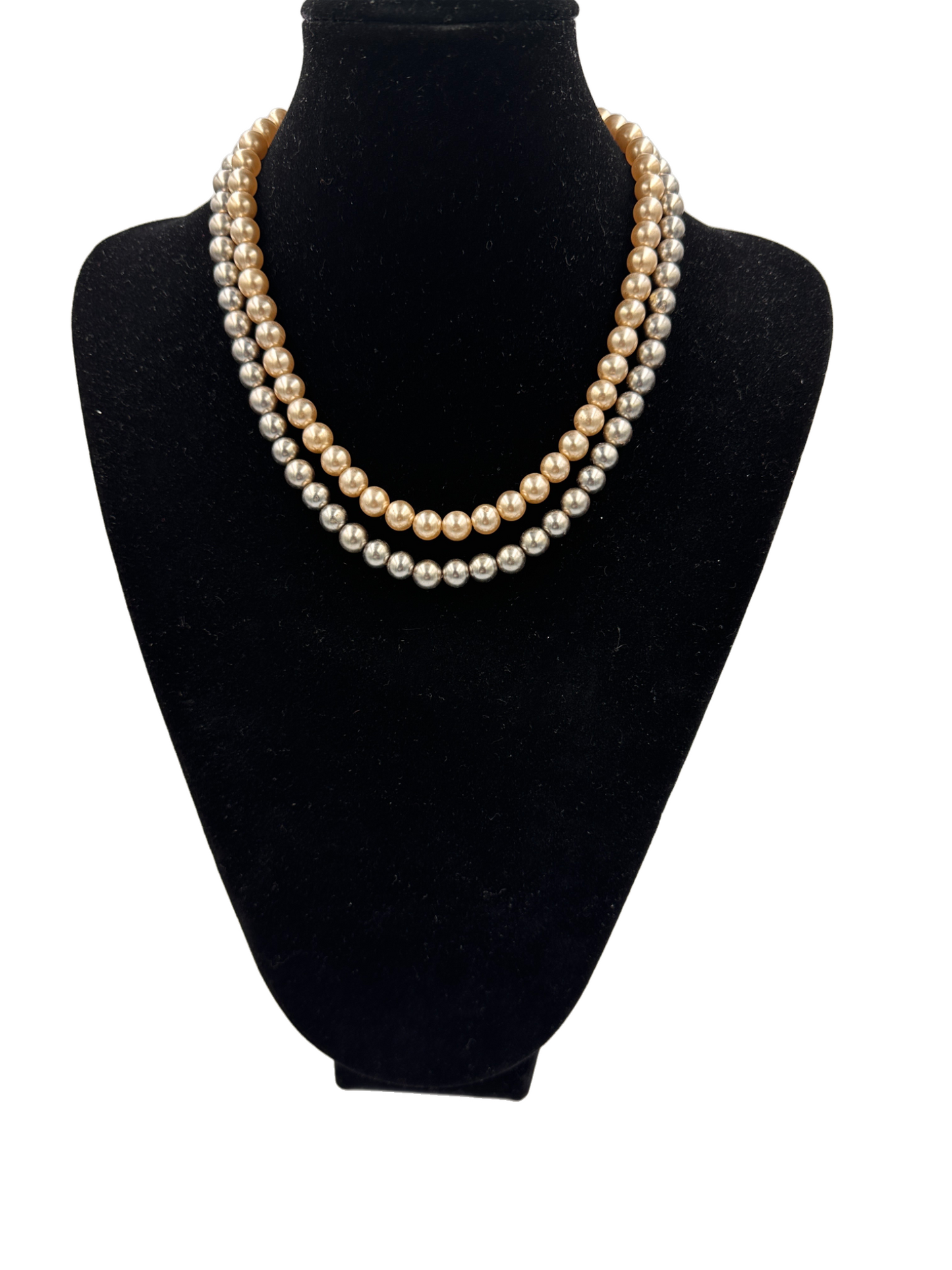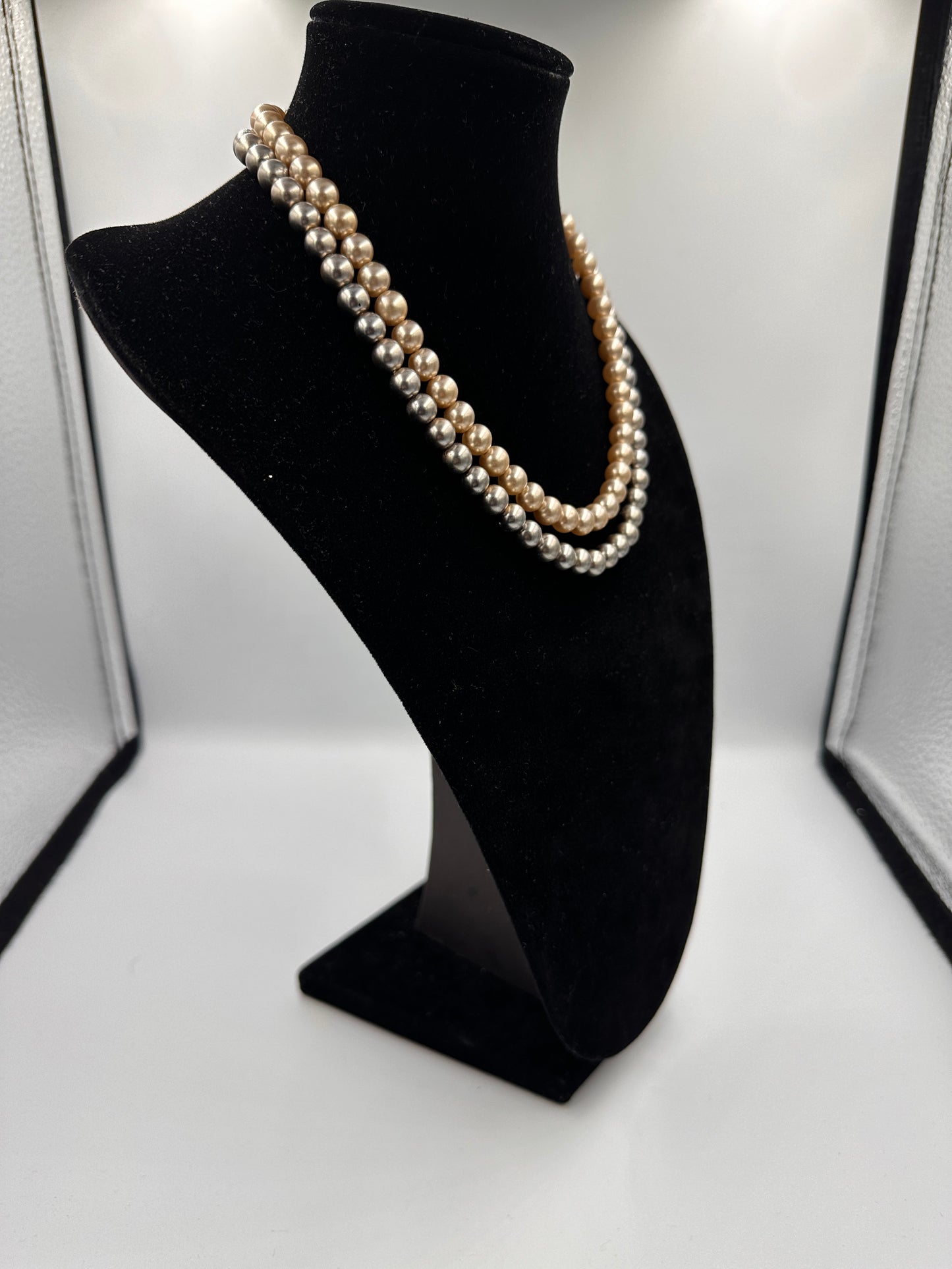 Zweireihige Perlenkette in Zwei Farben mit Gold-Akzenten