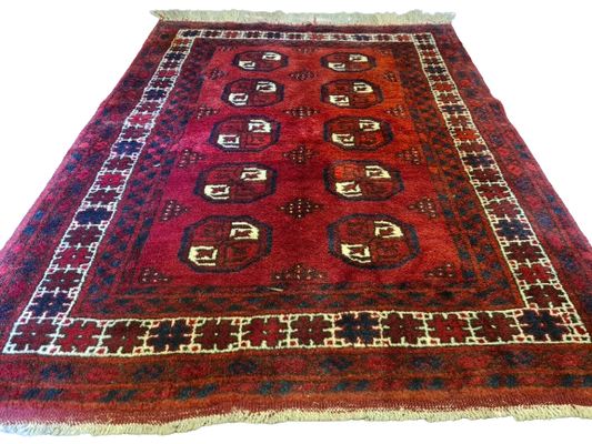 Antiker Orientteppich – Handgeknüpfter Art Déco Afghan Teppich 124x92cm