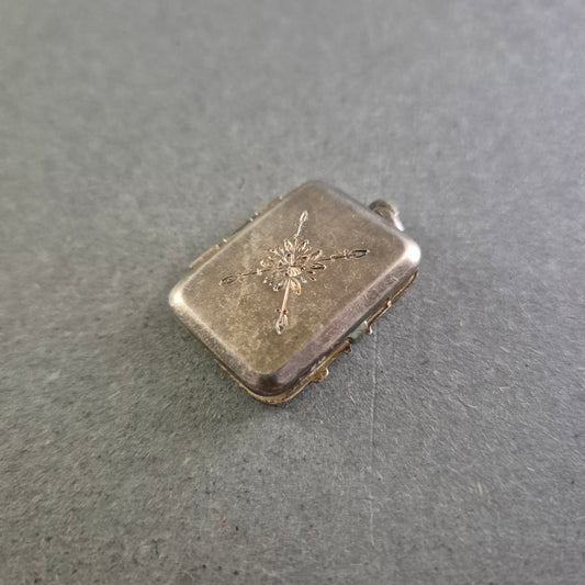 Antiker rechteckiger Medaillon-Anhänger aus echtem Silber mit zarter Gravur