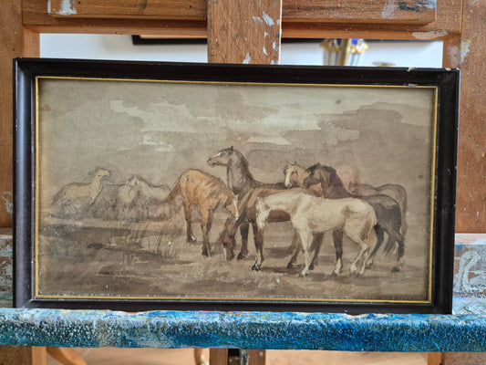 Wasserfarbenmalerei (XX) Gemälde Pferde Deutsche Schule 26,5x15,5 cm