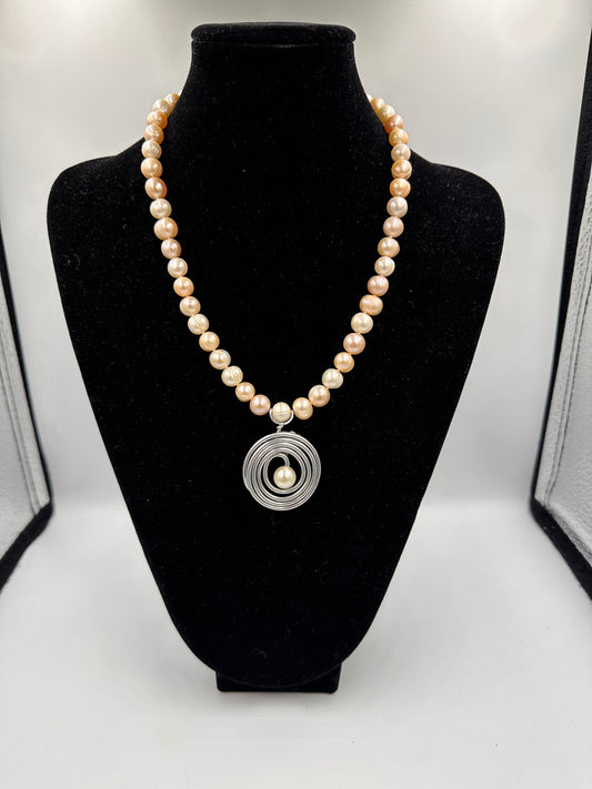 Echte Perlenkette in Verschiedenen Farbtönen mit Anhänger