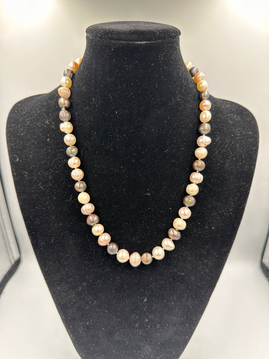 Echte Perlenkette in Verschiedenen Farbtönen mit 925 Silber Verschluss