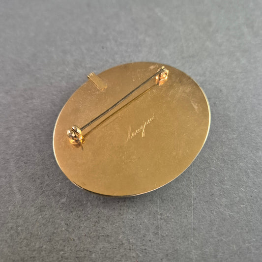 Signierte Langani Vintage-Brosche mit Naturstein – Eleganter Retro-Charme