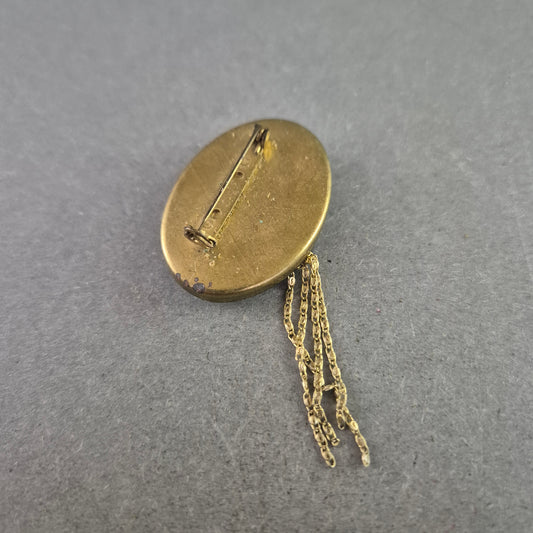 Künstlerische Vintage-Brosche mit Kettenelement – Strukturiertes Design