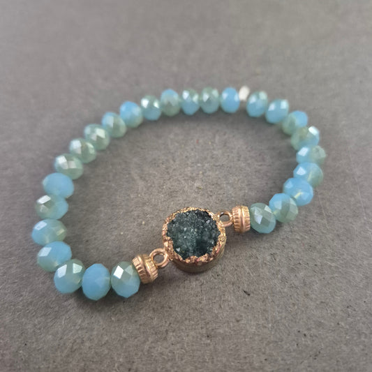 Elastisches Perlenarmband in Türkisblau – Mit rohem Kristallstein