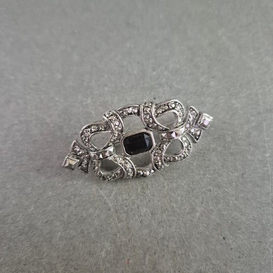 Silberfarbene Vintage-Brosche mit schwarzem Stein – Filigranes Design