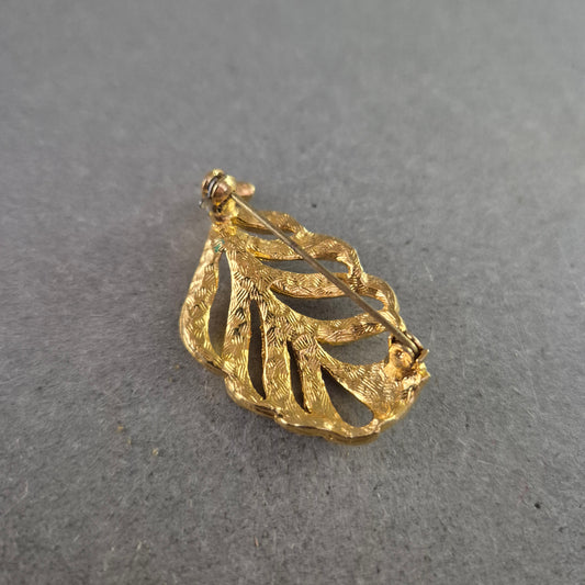 Goldene Vintage-Brosche in Blattform – Funkelnde Eleganz im Retro-Stil