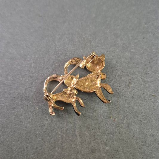 Verspielte Vintage-Katzenbrosche – Schwarzes Emaille & Strassdetails