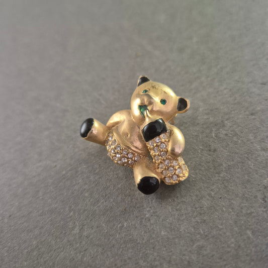 Verspielte Teddybär-Brosche – Vergoldet mit Strassbesatz