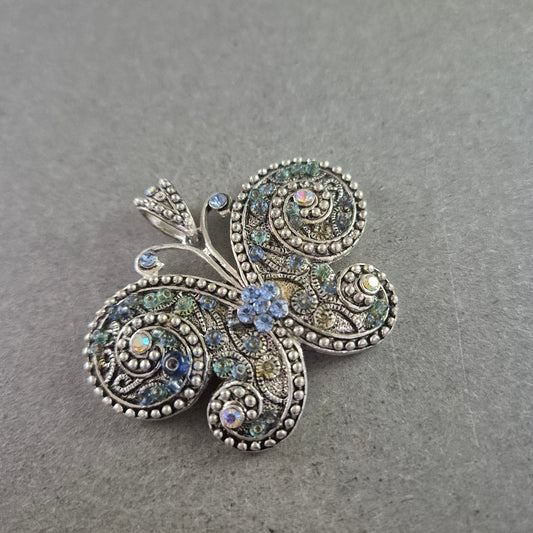 Schmetterlings-Brosche im Vintage-Stil – Silberfarben mit Glitzersteinen