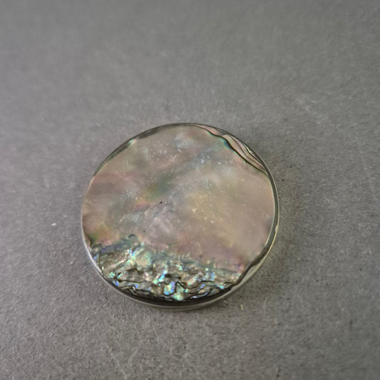 Runde Vintage-Brosche mit Perlmutt-Optik – Abalone Design