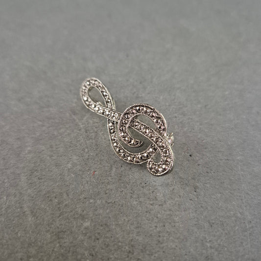 Musiknoten-Brosche im Silberlook mit Strass – Vintage Musikliebhaber-Stil