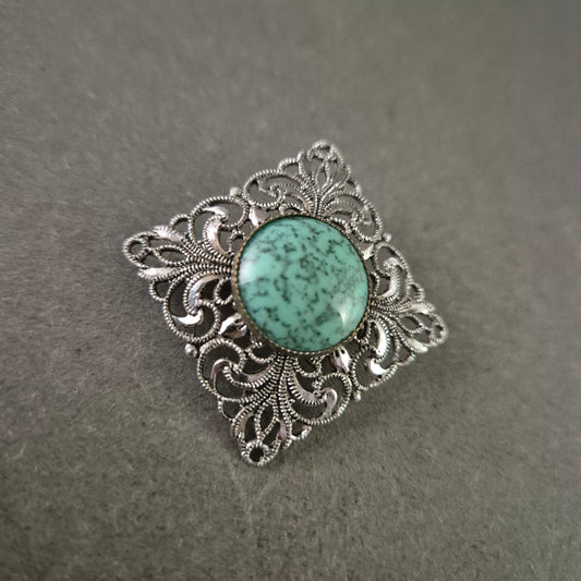 Vintage Anstecknadel mit türkisfarbener Mitte im filigranen Design