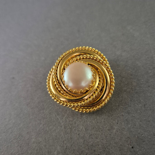 Vintage Clipbrosche mit Perlenimitat und gedrehtem Goldrahmen