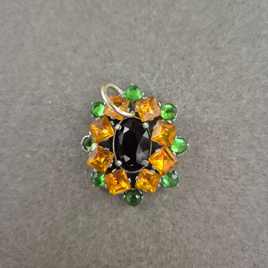 Bunter Vintage-Anhänger mit schwarzem Stein und Zierkristallen