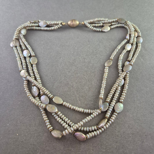 Mehrreihige Halskette mit schimmernden Perlen in Grau