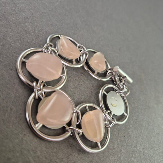 Modernes Armband mit rosa Steinen und runden Metallelementen