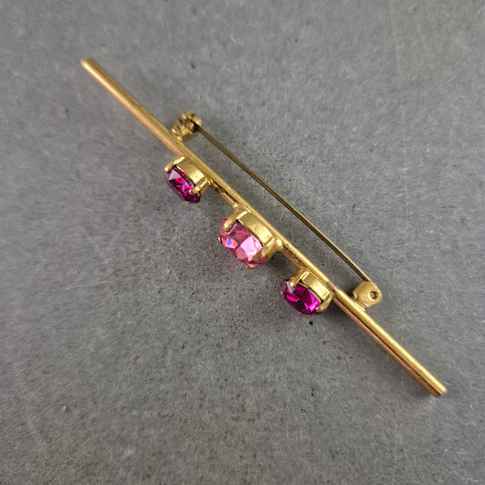 Schlichte Vintage-Brosche mit pinkfarbenen Steinen – Eleganter Balkenstil