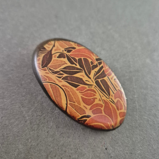 Ovalbrosche im Retro-Look mit floraler Musterung in Braun-Orange